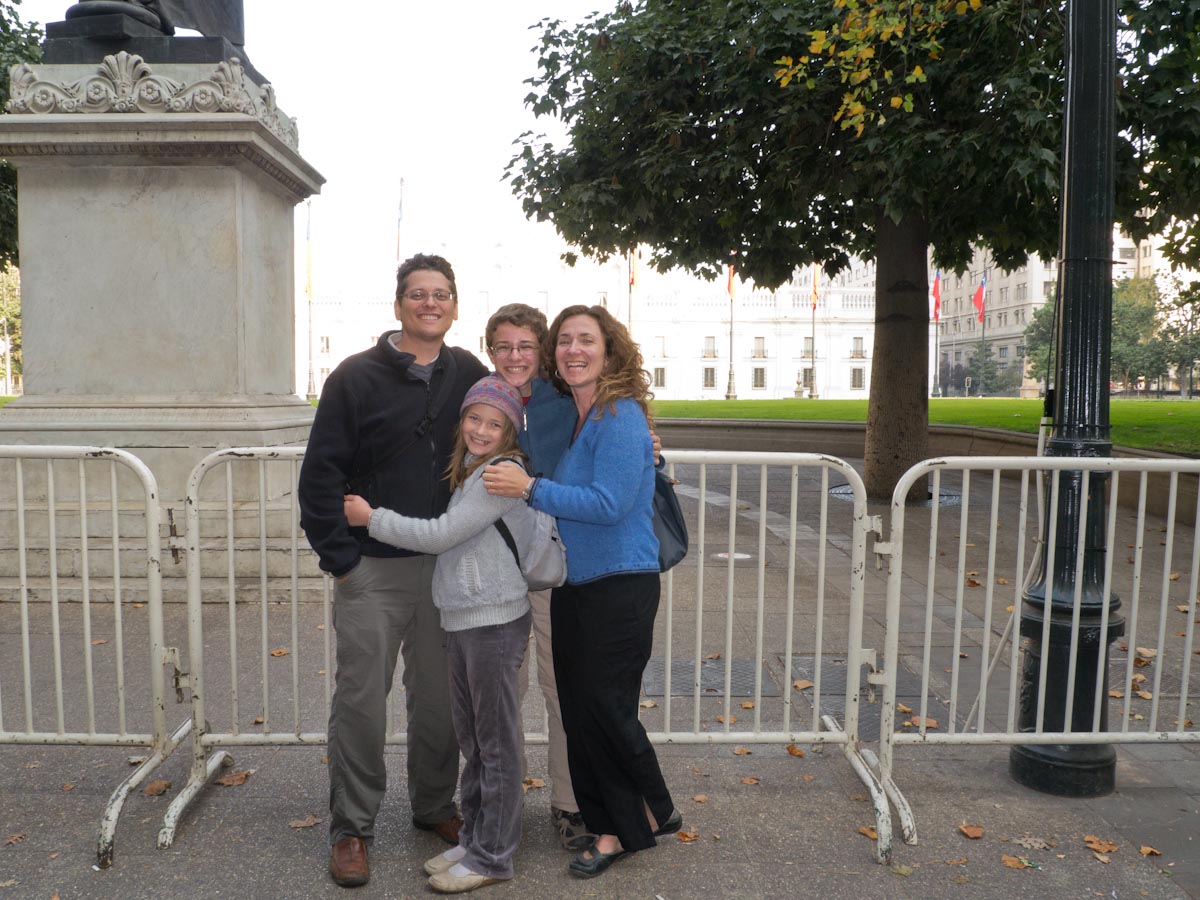 The most active tourism in Chile is outdoors, from sunny vineyards to snowy mountains. There are dry moonscape deserts to the north. Easter Island is reachable by plane to the west. Penguins, dramatic fjords and the gateway to Antarctica are to the south. We will have to come back to explore these further. Seeking to get beyond the basic city tour, we scheduled two visits with local people. The first was a visit to a local vocational high school for agriculture, which Katherine explained. The second was a visit to Dinkenesh, a small business owned by Renate Dockendorff, a woman who makes and sells chocolate candies from a studio in her home. Renate led us on a chocolate tasting and then helped us make our own one-of-a-kind chocolate bars – yum! Afterward, Carter and Katherine worked off a few calories playing soccer in the backyard and taking shots on net against her five-year-old son Ignacio. They came away convinced that he would be Chile’s future national goalie for sure. So what about Santiago as a place to live? If Argentina is filled with Italian descendants living in the Paris of South America, then Chile is “the England of Latin America.” Of all the Latin American cities we have seen so far, this one felt the closest to home. There are suburban neighborhoods that could be taken straight out of Massachusetts, and plenty of affluent shops and restaurants in the best districts of the city. The Internet was the fastest so far in Latin America. They have clean water from the Andes; the air has some smog detectable but not an oppressive amount. Summer can reach 90 degrees here but there is no humidity and the summer evenings are cool; winter is cold enough to change colors of the leaves but it only snows once every few years, while snow for skiing is available for a large portion of the year in the mountains. We did not see much of a theater scene and this is not a big publishing town, but they have some small movie studios and “the live shows in Buenos Aires are just a short flight away.” Chileans are mostly Roman-Catholic and 80% are of Spanish-Indian descent. Chile has the highest GDP per capita in Latin America and is a member of the OECD. It ranks number one in Latin America on economic freedom and freedom of the press and has a low perceived level of corruption. On the other hand, there is a fairly wide gap between wealthy and poor. On health care, the rich can pay $300 or more per person per month and get excellent coverage. Most middle class people use Formosa (spelling?) for $60 per month and it is “pretty reasonable if you know how to work it.” Those in poverty have access to free healthcare that is “bad and you wait for hours but in the end you do get seen.” Similarly for education, Chile has “the two absolute best universities in South America, where leaders from many countries send their kids”, but only 15% of the general population goes to college. Living in Santiago – which is spread out across a lot of land into 36 different districts like arrondisements – is quite convenient if you can afford a car and miserable if you have to rely on the sparse public transport. Like most Latin cities, security is worse than in America. You still see some houses with iron gates and electrified fences (but fewer than in Costa Rica). The fanciest residential street we saw had a guard booth at the entrance. And street theft by desperate people is a real concern (“but less than in Argentina or Brazil!”). You cannot wear fancy jewelry in the streets, you do not carry anything you can’t afford to lose (e.g. a passport), and you keep your camera firmly strapped around your shoulders. Break these rules and you are basically asking to be mugged. There is a good science museum here (MIM) but we were warned off the soccer stadium (“too rough”) and the Fantasyland amusement park (“not for younger kids”). That said, these guidelines are not particular to Chile – they are customary across Latin American cities. So if you look past that and try to figure out where to be or where to invest in Latin America, Chile has merit. The country is doing well economically. Chile has huge copper reserves, excellent wineries, lots of export crops, and plenty of fresh seafood. Chileans are conservative, religious and more reserved than their colorful neighbors in Argentina and Brazil. The dollar may be dropping but it still goes a long way here. We were embarrassed to know so little about Chilean history, especially as America played (according to locals) an enormous part. The short version is this: in 1970 Chile fractured along class lines and through a series of events ended up selecting Salvador Allende – a socialist and avowed Marxist – as President. Allende nationalized the American-owned copper mine and started taking assets from the rich to give to the poor and started printing money. The economy crashed. The locals here told us that the USA helped destabilize the government and funded Allende’s military leader, General Augusto Pinochet, to lead a military coup. Pinochet bombed the Presidential Palace in 1973 and Allende died. Pinochet consolidated power and stayed in control for the next 17 years through torture and blood, however we did make some economic advances. In 1988 he held a plebiscite expecting to confirm his power but somehow lost the vote! From there Chile shifted to a more mainstream democratic government, electing a woman President in 2006. The current President is a wealthy right-wing businessman named Sebastián Piñera. Chile was thrown for a loop by a huge earthquake in early 2010, which killed 500 people and caused billions in damage. Chile has suffered two mega-earthquakes in the 8.5-9.5 category in the past decade and, as the east side of the Pacific Ring of Fire, is one of the most seismologically active countries in the world. While we were here, there were tens of thousands of people protesting in the streets. It was a battle of gre