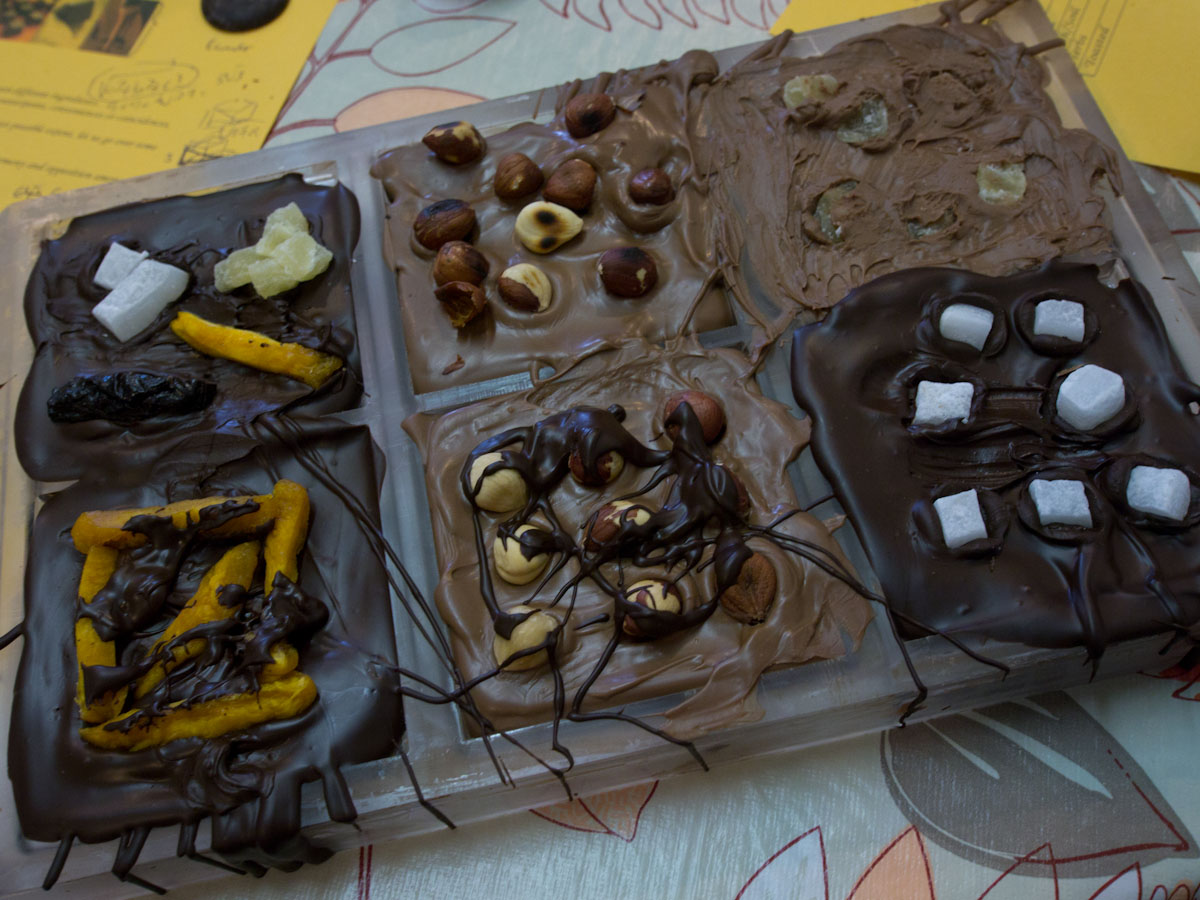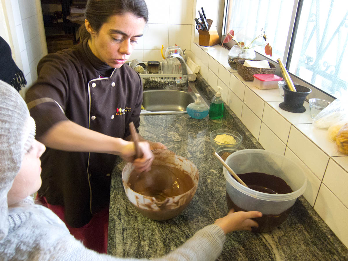 Our collective sweet tooth was more than satisfied with a three-hour chocolate tasting class at Dinkenesh, a boutique chocolatier run by a gregarious and extremely knowledgeable entrepreneur. Renata walked us through single-source chocolates from Costa Rica, Ecuador, and Venzuela, and two blends from Africa. We were encouraged to let the chocolate melt on our tongues and to record the flavors from start to finish. Undoubtedly influenced by the reference guide Renata distributed, we declared the chocolate to be “woodsy” or “smoky” or “tasting of whiskey and earth.” The terms were almost identical to those bandied about at serious wine tastings. The bottom line for us was quite simple however: there wasn’t a single kind we didn’t like. Following the tasting we got busy and made our own chocolate bars using a variety of dried fruit and nut toppings.