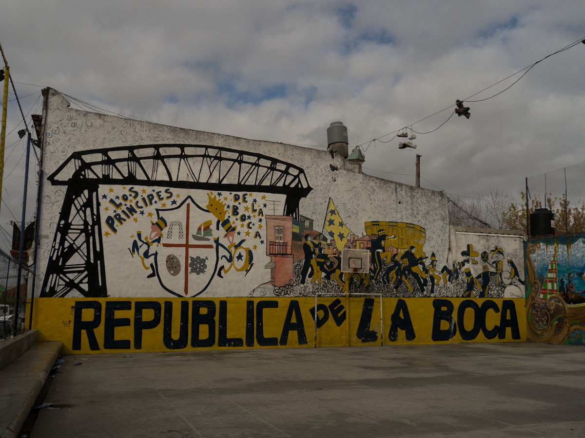 First a bit of soccer history. Boca’s jerseys used to be pink but everyone laughed at them so they changed to black and white. But another team already had those colors. They got mad and challenged Boca to a match. The winner got to keep the colors. Boca lost and one of the players said he was going to go down to the port. He said that the first international ship to come would be their colors. A Swedish ship came first so their colors changed to blue and yellow, the colors of the Swedish flag. Newell is black and red and comes from Rosario. It never had any problems with its colors.