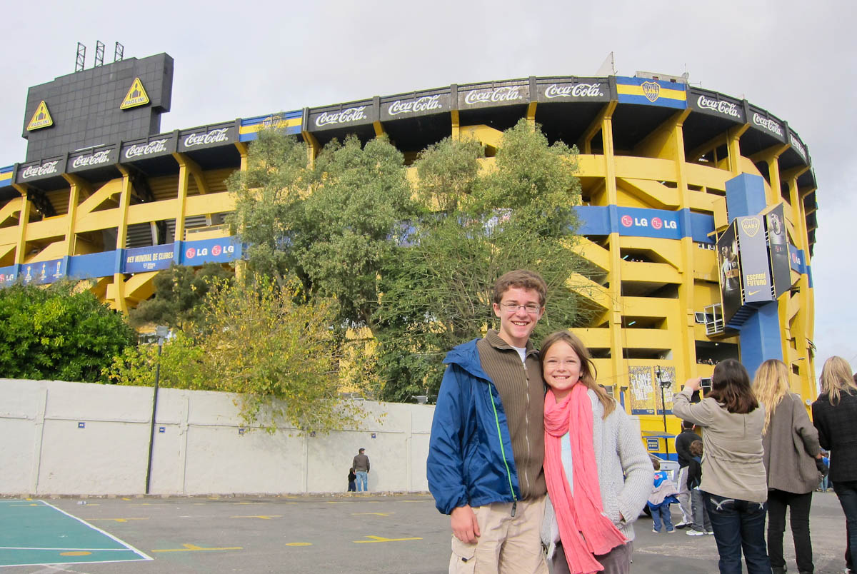 Soccer is not only the most popular sport in Argentina, it’s also the one people get the most aggressive over. At first we were very worried about going to a soccer game live. When our friends the Whites went to a soccer game where River Plate and Boca Junior played, some fans started lighting things on fire and they threw them at the opposite teams’ fans. But we were only going to Boca vs. Newell so it was a less important game. We hoped we would be safe.