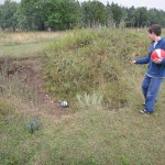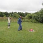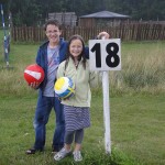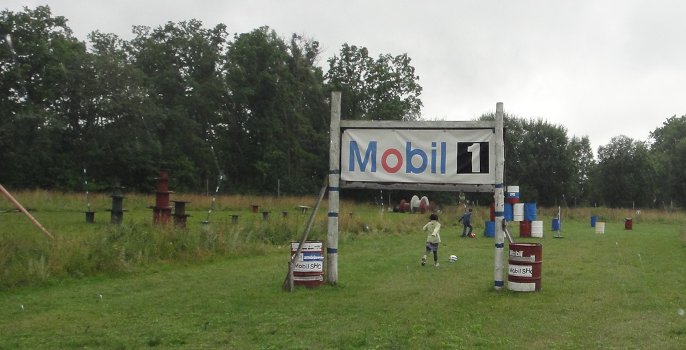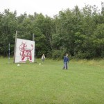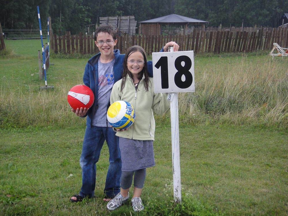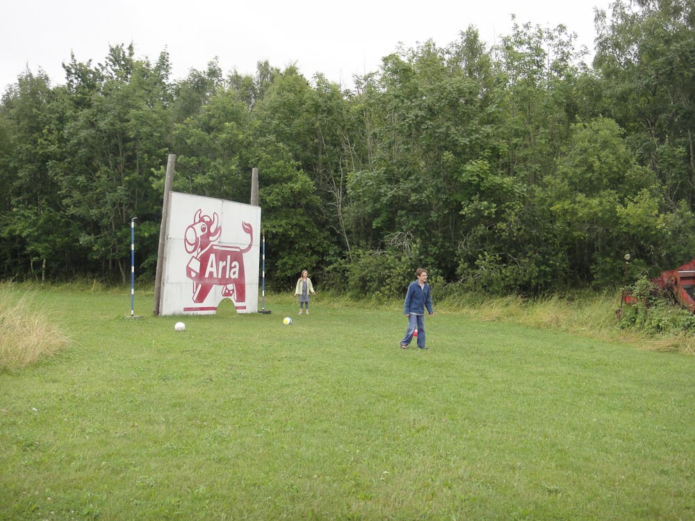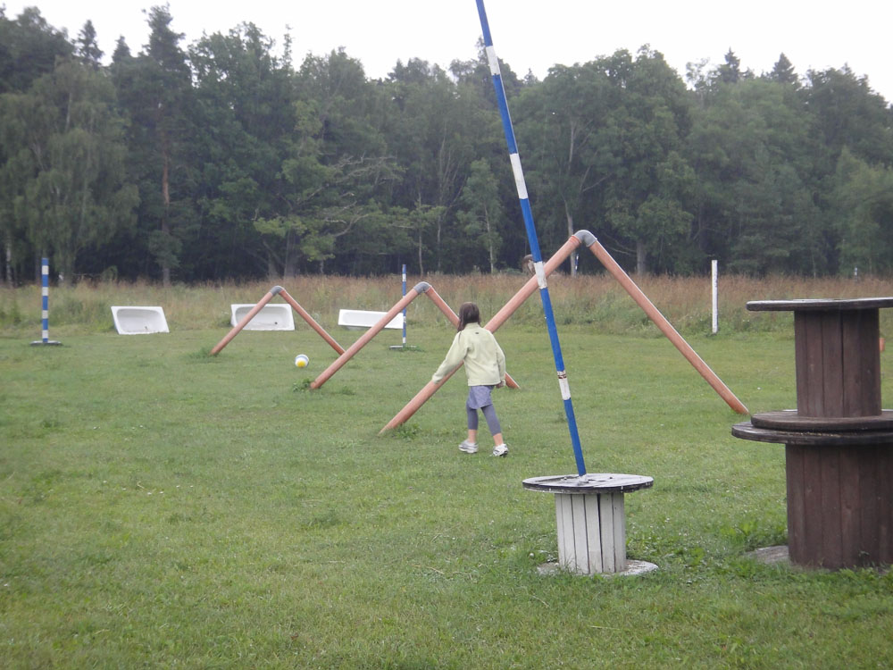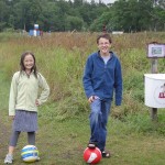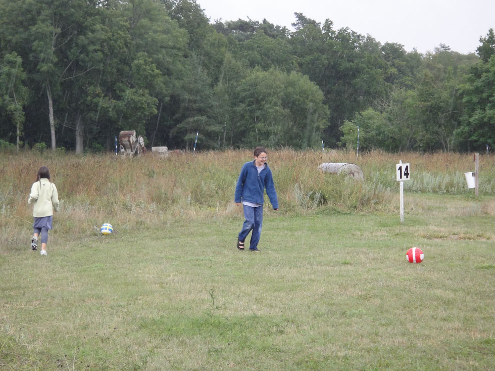 In the first hole we had to kick the ball under a tractor and past a ditch. Then we had to get the ball through a giant bill-board cow’s legs. The second hole had a pond and the next thing we knew, my ball went “splash.” We continued along the holes until it started drizzling and we were soaking wet.