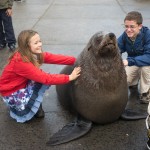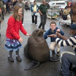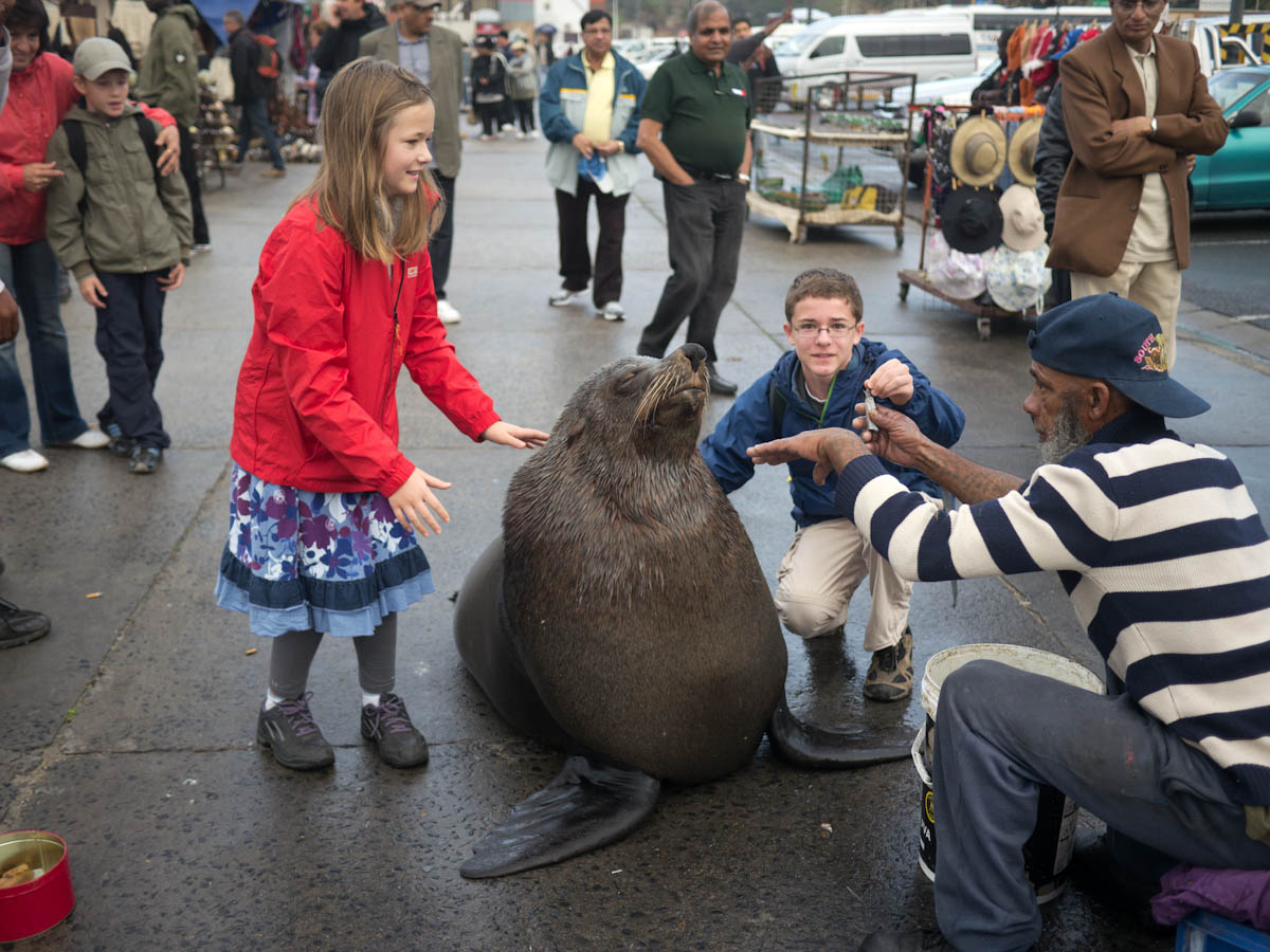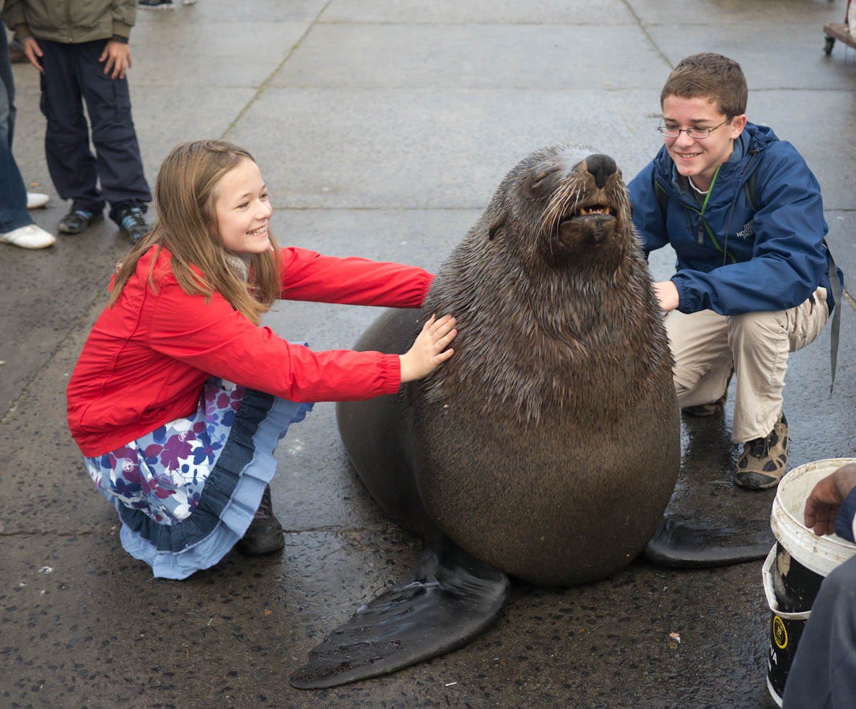The fisherman would give you a fish and you got to feed him if you held really still, and you could also pet him. Petting a fat seal sort of realized a dream Katherine and I had had ever since the Galapagos...the dream to squish a seal!