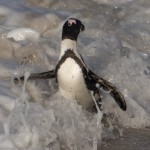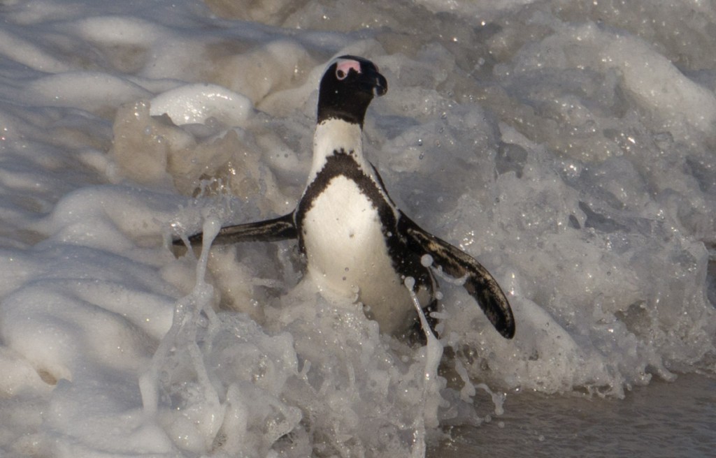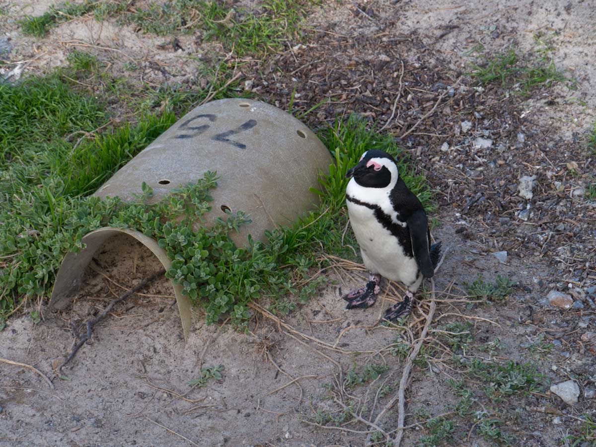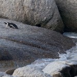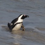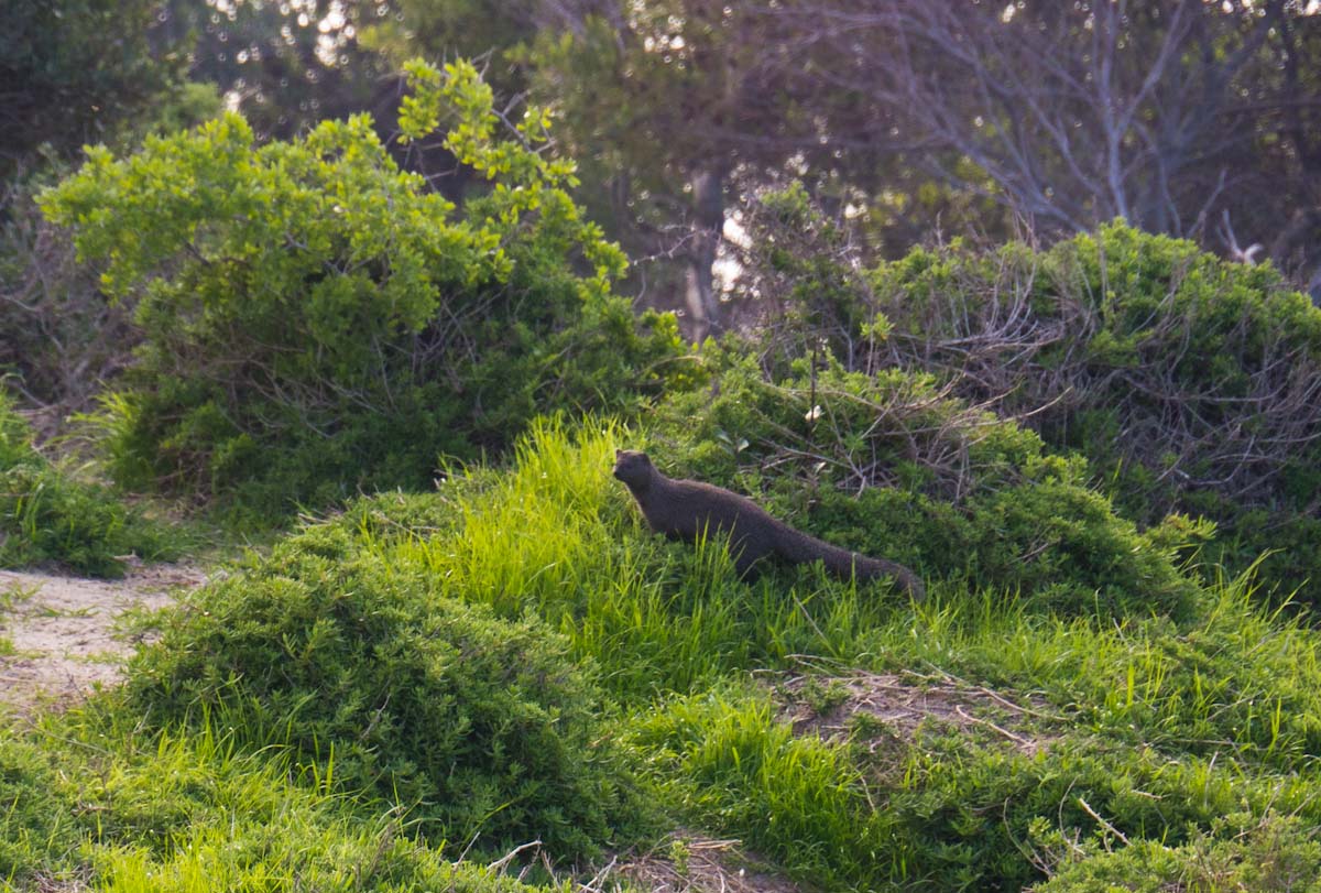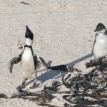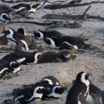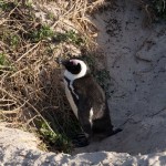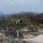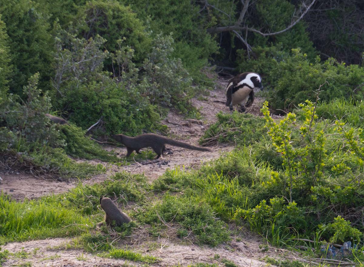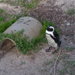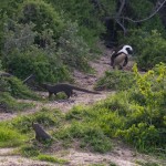 On our way home we saw some penguins and a seal. The penguins, called the African Penguin, are the 3rd smallest species of penguin in the world. So, now we have seen the first (the Little Blue or Fairy Penguin), the second (the Galapagos Penguin), and the third smallest penguins. They were black with white bellies that had black dots. Their eye had a little strip of pink skin leading to their beak, this applies to both eyes. There is also a black band across their upper chest. These little guys spend their days swimming, and eating, and sleeping, or taking care of their offspring. They camp in bush or shallow sand ditches and make little nests. They look like people in suits when they walk and it’s really funny. The Park Rangers also made them little homes out of plastic drums but only a few of them were being used. We also spotted a rare find…a mongoose scampering about and trying to get at the penguin’s eggs! Naughty rodent…