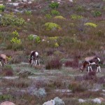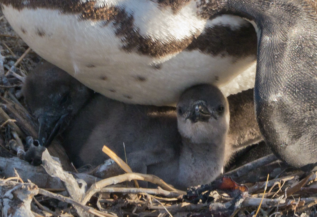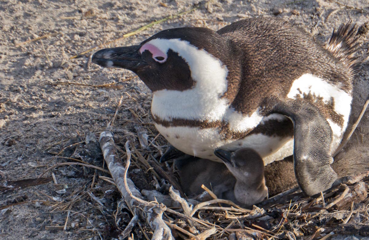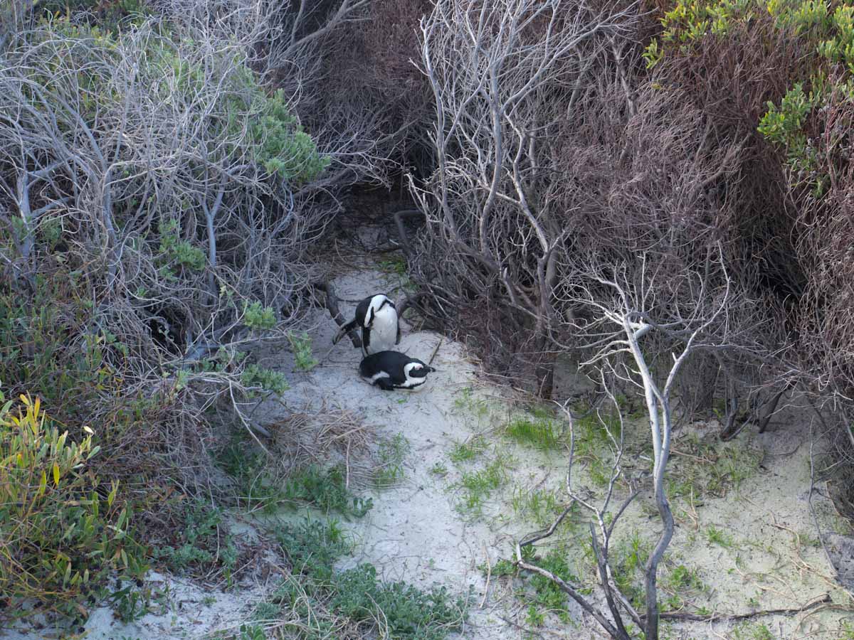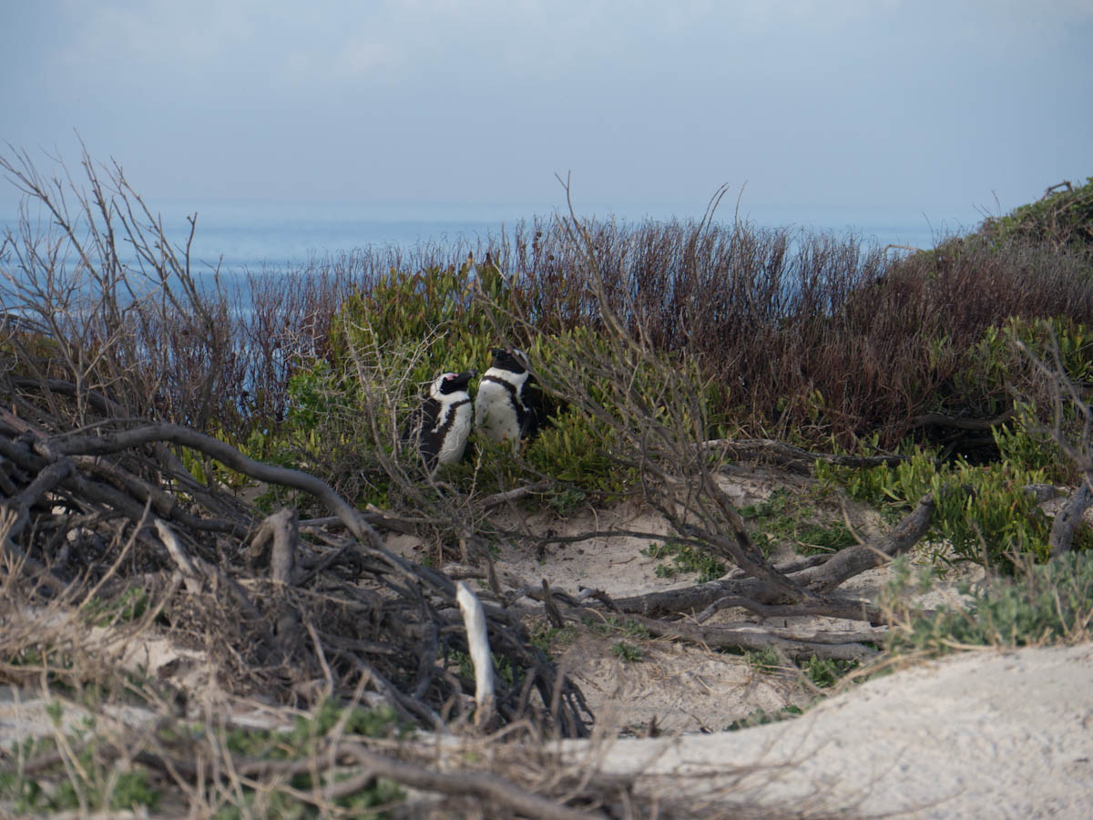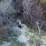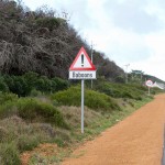 On our way home we saw some penguins and a seal. The penguins, called the African Penguin, are the 3rd smallest species of penguin in the world. So, now we have seen the first (the Little Blue or Fairy Penguin), the second (the Galapagos Penguin), and the third smallest penguins. They were black with white bellies that had black dots. Their eye had a little strip of pink skin leading to their beak, this applies to both eyes. There is also a black band across their upper chest. These little guys spend their days swimming, and eating, and sleeping, or taking care of their offspring. They camp in bush or shallow sand ditches and make little nests. They look like people in suits when they walk and it’s really funny. The Park Rangers also made them little homes out of plastic drums but only a few of them were being used. We also spotted a rare find…a mongoose scampering about and trying to get at the penguin’s eggs! Naughty rodent…