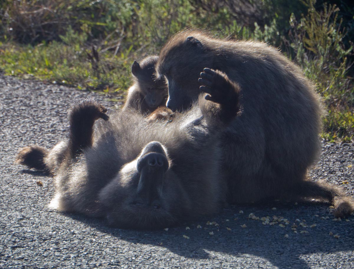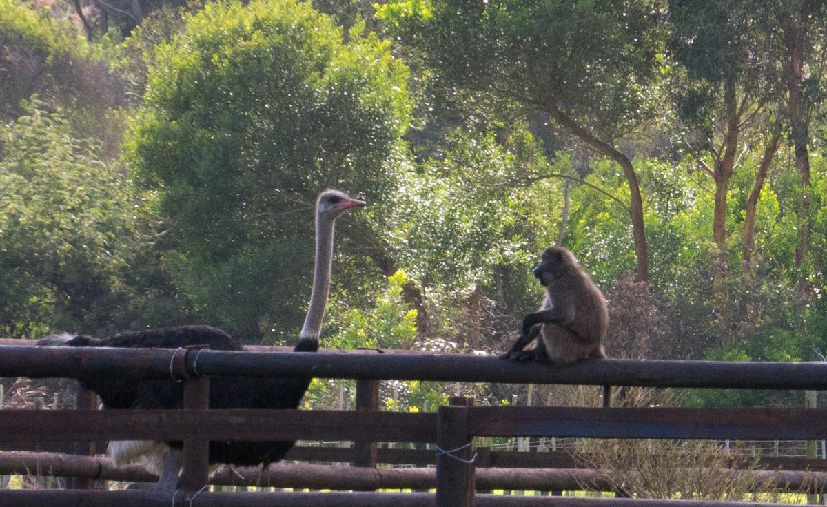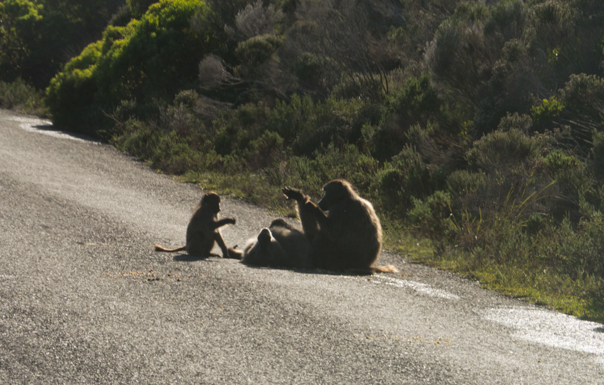 On our drive there we passed through a large nature reserve where we saw massive antelopes. These guys were seriously big; they were about the size of a cow and with the features of a deer. A strange combo indeed, these creatures were called Elands, and they are herbivores so we weren’t in any danger. We also saw big baboons that were modeling humans: the child was running about, the father was sprawled back with his arm in the air, and the wife was hunched over and picking bugs out of her hubby’s armpit hair. How romantic.