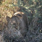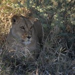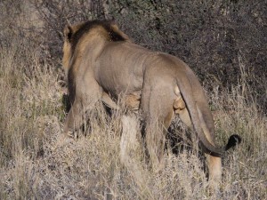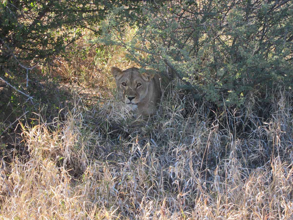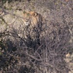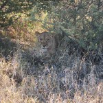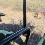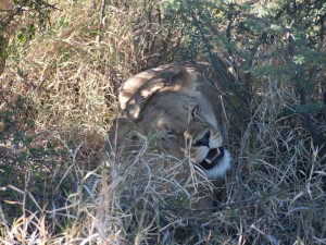 On our first day we saw both a lion and a lioness. They were rare black-maned lions. The Lioness was getting moisture from the plants by licking them and the lion was lounging about. The jobs for the lion and lioness are different than one might think. The lioness is the one who hunts while the lion protects their territory. We were almost six feet away from the female and about ten from the male.