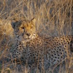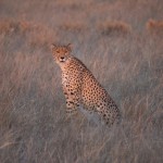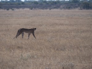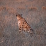 In the first chase the cheetah was a female. She sprung up and chased a herd of steenbok (like deer) and oryx (like ox). She was so fast as to be just a blur. Sadly though she couldn’t catch anything, because the steenbok sensed her before she pounced.