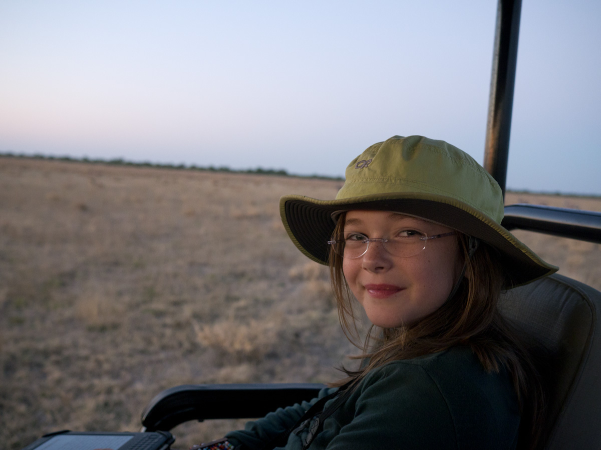 The impression of a kid is different from that of a child. For that reason I am interviewing my grandma with three questions I will also answer myself. Q: Do you enjoy Safari-ing? Why? G A: Yes. Because I can see a part of the world with the help of a guide so I won’t be eaten. And I especially like it with my grandchildren. K A: Yes. Because I love seeing exotic animals when they’re not in a cage. Q: What is your favorite animal? Did you see it? G A: A piggy. We came pretty close with the warthogs. K A: An elephant. No, but we might see it in the next camp. The Kalahari isn’t really a good habitat for elephants, it’s too dry. Q: Would you recommend Safari-ing? Why or why not? G A: Yes, I would recommend safari-ing because it’s a fascinating way to see animals that you could otherwise only see in zoos, and they are in their natural habitats here. K A: I would only recommend it if you are a huge nature lover and an early bird. I’m a night owl though, and still enjoy it.Jun 15