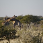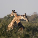 Back at the Kalahari desert, we saw young male giraffes will fighting each other. They swing their heads at each other and use their horns.