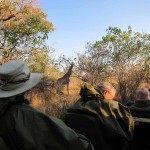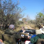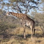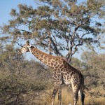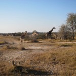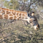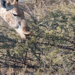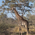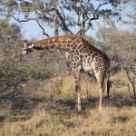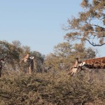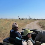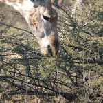 When we first saw a giraffe we were near the airstrip. There were two groups. One was a pair of giraffes, one was female and one was male. They were far in the back so we didn’t really get to see them much. There was, however, a family of three about five meters away from us. The baby was almost seven feet tall and the female eight and a half. The male was probably nine or ten. They were eating from a bush practically made for giraffes. I don’t know the real name of the plant, but I called it a prickly. It had almost two inch thorns and was very tall at its highest. The prickles are for protection when it’s young, and as it grows taller the prickles start getting smaller, starting with the top ones. So when the bush is tall enough for the giraffe to eat comfortably, it is ready to eat.