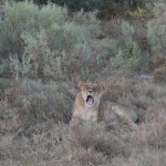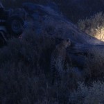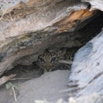 We sat in the semi-darkness and watched in silence as she returned to the den and her elated cub bounded out and tumbled all over her. She greeted him with big licks, almost as if to say “I told you to wash up before I left.” Alan had told us that the young cub was entirely dependent on its mother and would remain so for another several months (he guessed it was between 6-8 weeks old). He told us that if something happened to her, the cub would surely die as National Park protocols usually do not intercede with the natural progression of, well, Nature. As I watched the joy that little cub seemed to show at his mother’s arrival, I couldn’t help but wonder if he were aware of just how much was riding on her return. I doubted it. I think he was just ecstatic to be with her. The scene was unexpectedly poignant and I found myself blinking back tears.