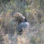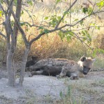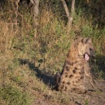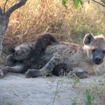 We also had the chance to get close to a spotted hyena den. Now, the only impression I previously had of hyena came entirely from Disney’s Lion King: they were the bad guys and were definitely not cute on the big screen. In person, however, they have a certain gravitas. And they are big. We found the den by listening to the high-pitched squeaks coming from the hungry babies. The mom was approached by two cubs, but only let one nurse. We couldn’t understand why she kept pushing the other away, once even nipping it on its bottom! We were really worried that the tinier one was the runt of her litter and would starve. Then Alan explained that hyena live in large matriarchal clans. This mother was babysitting while the others were out foraging. She was clearly happy to keep guard but she wasn’t going to feed every hungry mouth. We felt a little better.