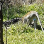 The return path leads past a souvenir stand frequented by peculiar monkeys.