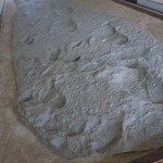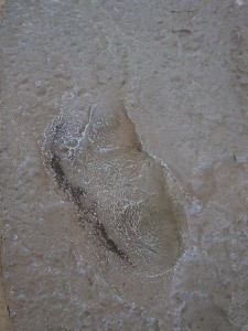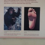 Apparently, a volcano had recently erupted. The ground was covered with hot ash. Three hominids came along, a female in front with a male close behind and another male a bit farther back. The threesome was walking slowly, probably because of the hot ash. The hominids were more human than monkey, because a monkey’s big toe sticks out at an angle to help grab branches, and a human’s big toe sticks forward to help push forward.
