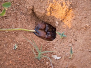 When the stick is in the hole you poke it around until you’ve capture the scorpion’s attention. It will clamp on the stick and then you must play tug of war, very slowly dragging it out. You should be blocking the sun with your body, meanwhile, so it will think that it is night. When the little guy (and sometimes big guy) is close enough, shift to the side and fling it out, provided the spectators are far away. Occasionally it will not work, but that’s alright. There are thousands of holes all over. Did you know the bigger the scorpion the less deadly?