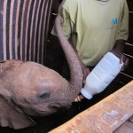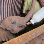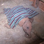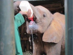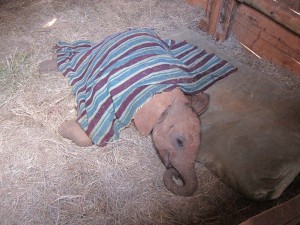 We could not believe how very small they were and how incredibly human they seemed. They trotted in from the field in parade formation, racing to their beds where they knew their keepers waited with full bottles. We watched as they guzzled gallons of milk, making happy slurping noises all the while. Their keepers then talked to them, stroking and scratching them, as they prepared mattresses and blankets for their naps. We fell in love with a little 9 month old named Naipoki, who had actually been rescued by our Sarara Camp hosts Jeremy and Katie! When Naipoki had finished her bottles, she nudged her keeper’s arm until he finally relented and let her suck on his fingers, just like a human pacifier. He then urged her onto her mattress, where she lay down and he covered her up. We watched wide-eyed as she tucked the tip of her trunk into her mouth and began to suck on it. Slowly she closed her eyes and fell asleep. I wondered if elephants could dream and, if so, what Naipoki dreamed about.