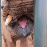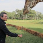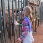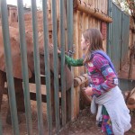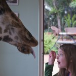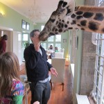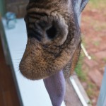 And I do mean close. I was a little dubious as Giles, one of the managers, encouraged us all to “kiss” the giraffe. He explained that we simply had to place a longish pellet between our lips and then tilt our heads up and wait for the smooch. Well, I loved the idea in theory but was a little squeamish at the idea of giraffe drool. Plus, I hardly knew this giraffe. In the end, though, we all went for it. I must confess that a giraffe looks really, really big when its huge head is looming over you. And its eyelashes are incredibly Iong! I squeezed my eyes shut at the last minute and waited for the slobbery aftermath. To my surprise and delight, the kiss was on the dry side. A giraffe tongue is blue/black and very long. It also feels a little scratchy, like fine sandpaper. I would definitely kiss a giraffe again.
