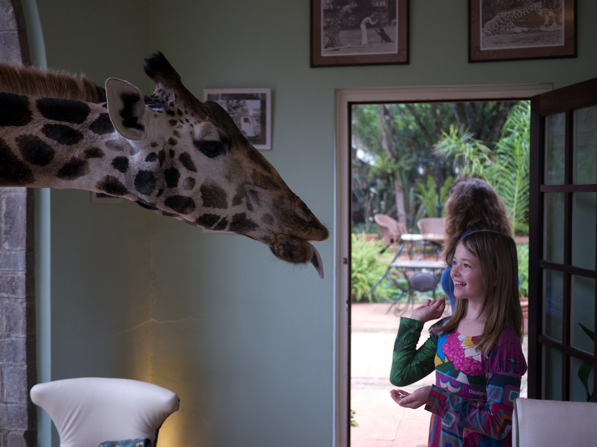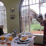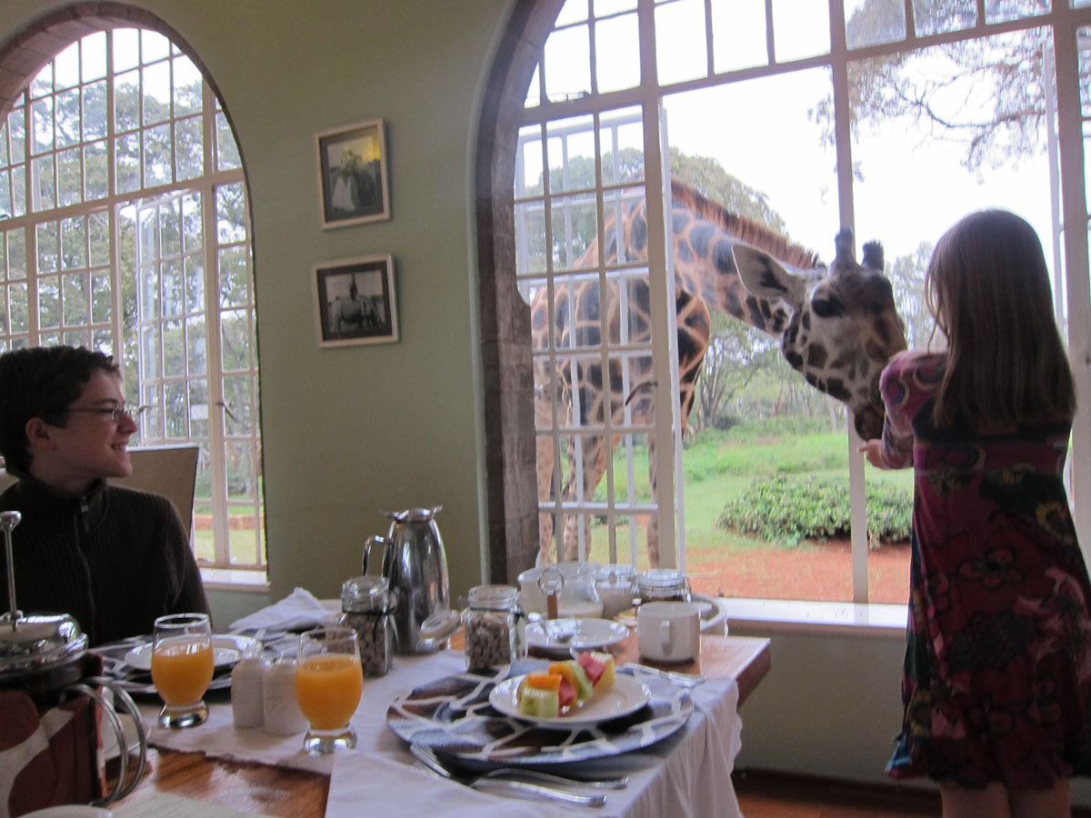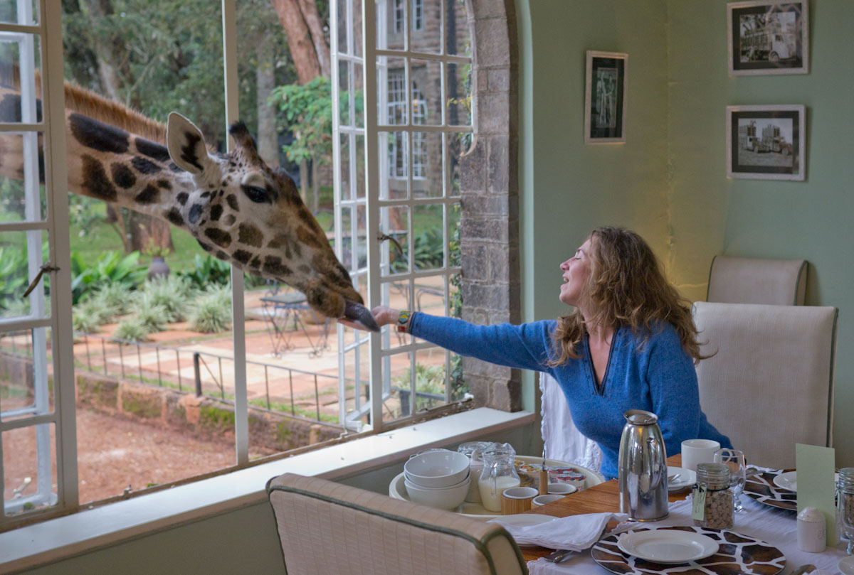 Imagine an ivy-clad turn-of-the –century colonial manor house surrounded by acres of unspoiled land. Inside, you can take tea in the drawing room by the fire or settle in for a lovely breakfast beside the windows overlooking the grounds. Next, imagine a 17’ tall giraffe strolls up and sticks his head inside the breakfast room, effectively asking “where’s mine?” You are at the Giraffe Manor in Nairobi, Kenya.