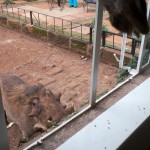 I wouldn’t get close to the other resident, though. A troupe of the fattest wart hogs we had ever seen ran in and out of the giraffe’s legs hoping to steal any dropped pellets. They might be cute in a scruffy sort of way but they can really hurt you so we kept a respectful distance.