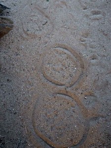 Yet those tracks were nothing compared to the ones we saw just two days later. Mark, our fantastic guide, came excitedly toward the house: “Did you see? Did you see?” We had no idea what he was talking about. It was barely 7:00 am and we had not had our first cup of coffee yet. As I poured the mugs, he expounded: “The leopard came right through the house, look!” I nearly dropped the pot. “What did you just say?” “The leopard prints, look, they are very clear. They come right up the path, turn here into the house, where it must have crossed, and then they pick up again here outside the kids’ room.” At his last words I darted into the kids’ room to be sure they were still indeed there and intact. They were. “Seriously?!” we asked. “It just came right in?!” I was incredulous and slightly indignant. Mark just smiled. “The leopard will never, never, ever bother a human unless it is provoked. You were not in danger.” “Well, that’s a relief,” I said as I gave him a wobbly smile.