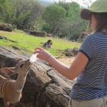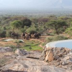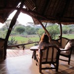 We were warmly welcomed by our hosts Katie and Jeremy, and their dog Saiwa, and then led to our home-away-from home. It was a beautiful cottage set apart from the lodge and other guest tents. It took me a few moments to register that it had absolutely no walls; it was completely open to the great outdoors and all that lives there. I tried to seem nonchalant as I casually enquired if anything ever made its way inside. “Nothing much beyond the occasional rock hyrax and fruit bat,” apologized our hosts. They sounded genuinely sorry that nothing larger or more interesting could be promised. However, they rapidly assured us that we had a very good chance of spotting dik diks (the tiniest species of antelope), elephants, and the occasional African buffalo on the front lawn.