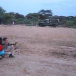 We pulled our chairs close to the fire and began to chat with Mark and Robert while we waited for dinner. Mark, the older of the two, was an Elder while Robert held the position of Warrior. For the Samburu, these social roles hold clear and crucial meaning: the elders are older and wiser and help to guide and govern the village, the warriors’ sole job is to protect it. Both men are extremely knowledgeable, fluent in English, and kind, kind, kind to our family. We asked them, “So, are there any special traditions around birth and death for the Samburu?” And that single question led to more than an hour of conversation and more learning than we could ever have dreamt: there we were sitting around the fire, shadows of the flames flickering over our faces, as Mark drew images in the sand with a stick—illustrating his explanations of the traditions of his ancestors precisely the way his ancestors always had. We learned about sacred rituals and age-old beliefs, and then ate a fabulous dinner. We fell asleep under the stars listening to the sounds of hyena and monkey howling. I made a mental note to thank Jeremy and Katie profusely for one of the most magical evenings of all our 365.