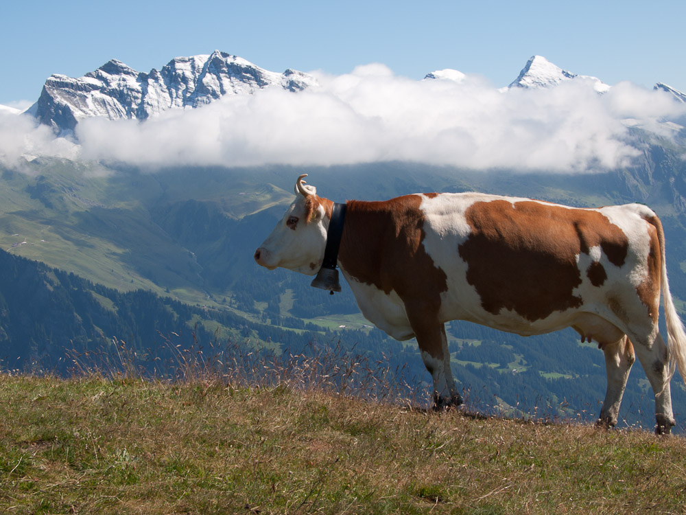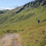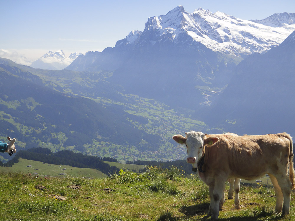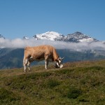 We didn’t get far before we encountered the cows. Some were sitting, some standing. All were chewing happily. They looked like props set against the backdrop of the mighty alpine peaks. Carter had a sudden inspiration and began recording video from all sorts of crazy angles (he may do a video post for a giggle). Piggy even said “hello” to one of the cows, albeit from a cautious distance.