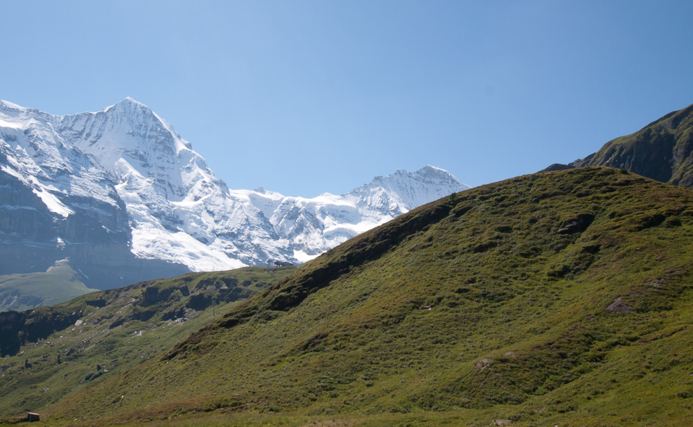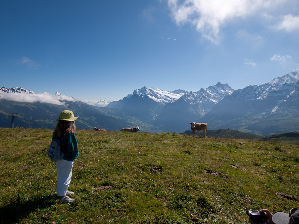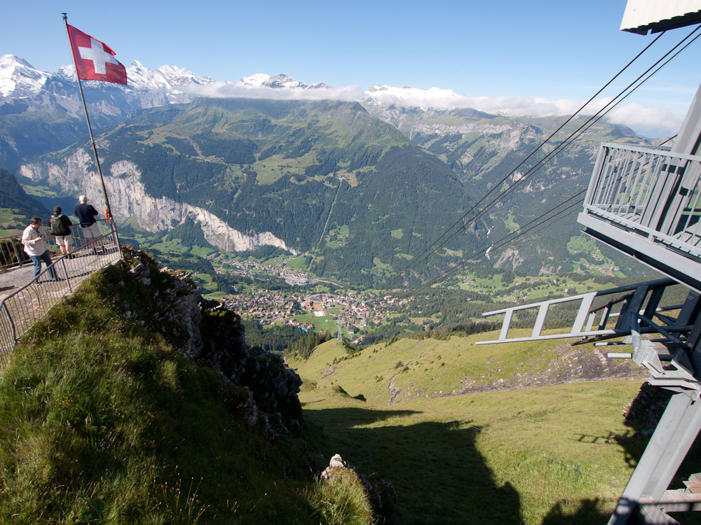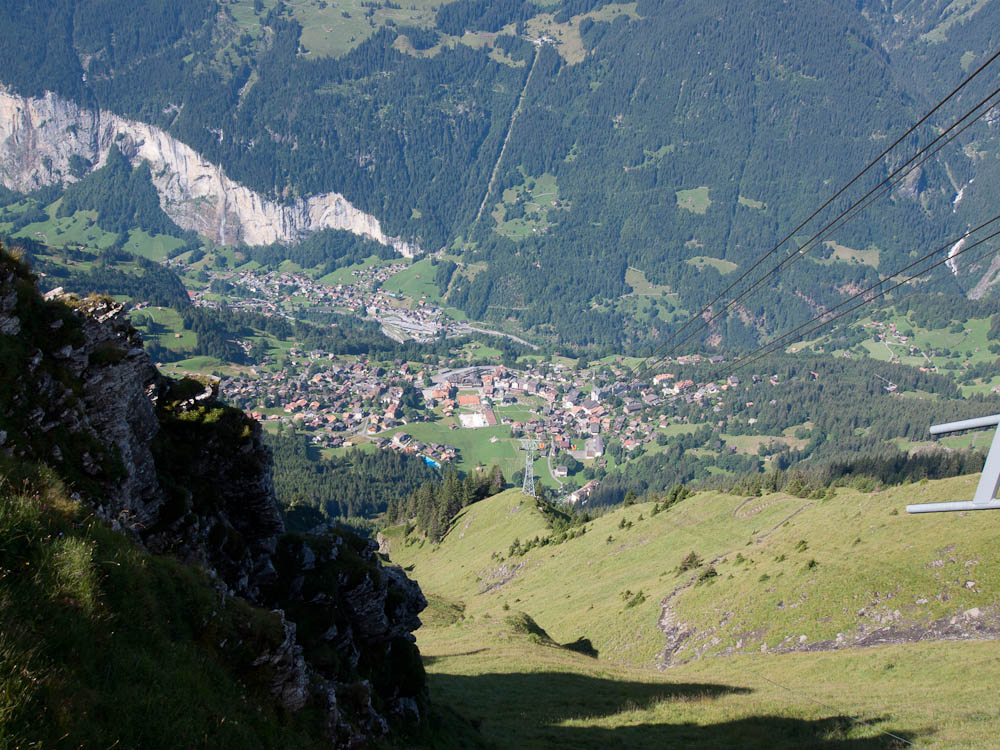 To reach the starting point for our walk, we had to go up out of the valley. This meant an aerial cable car ride from Wengen (elevation 1282 m) to Männlichen (elevation 2222 m), almost 3,000 feet up.