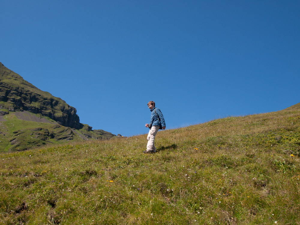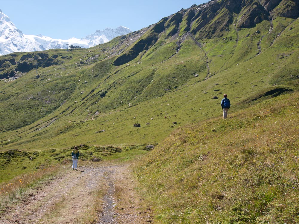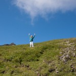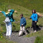 We hiked happily for almost three hours. A better writer would be able to describe what we saw. For my part, I will let the pictures speak and simply say that everywhere we turned there was a stunning vista to take in: blue sky, snow-capped mountains, lush green meadows sprinkled with wildflowers, and air that felt unnaturally cool and fresh to breath. I imagine it was what poets meant when they referred to something as “food for the soul” and we were feasting.