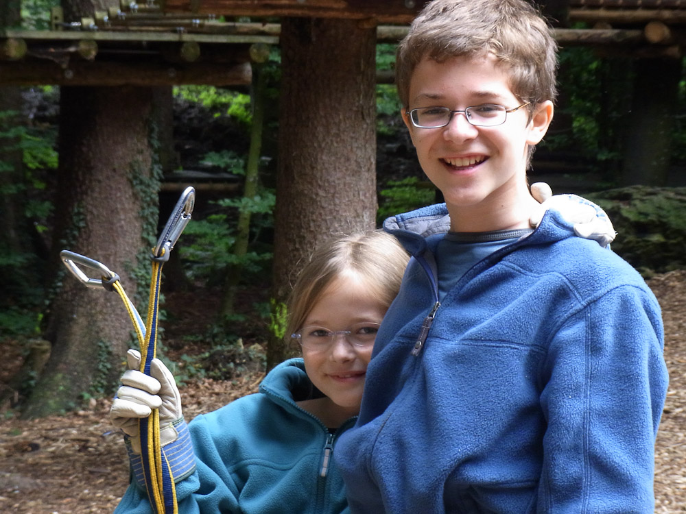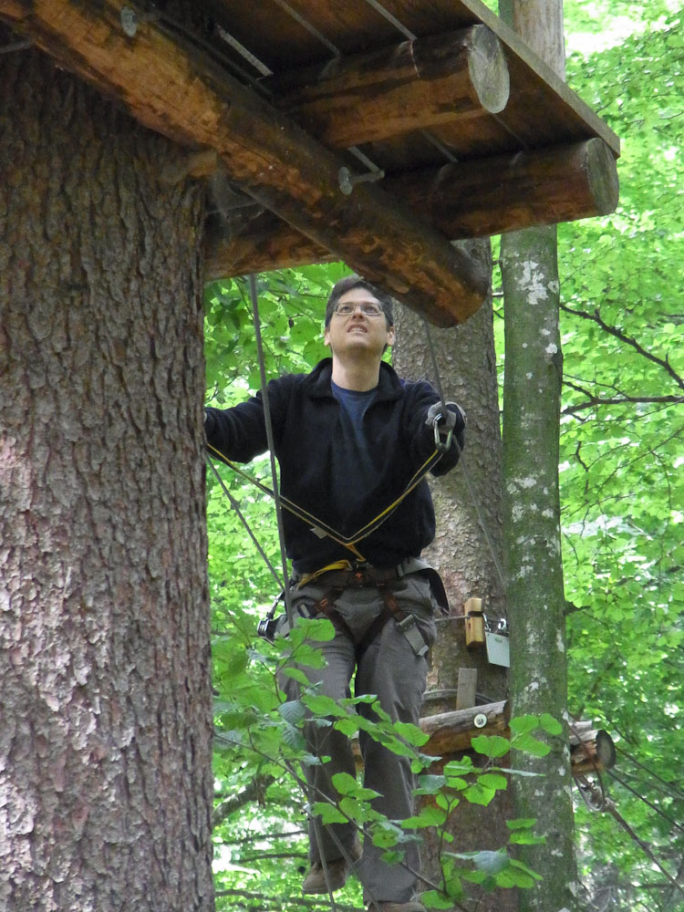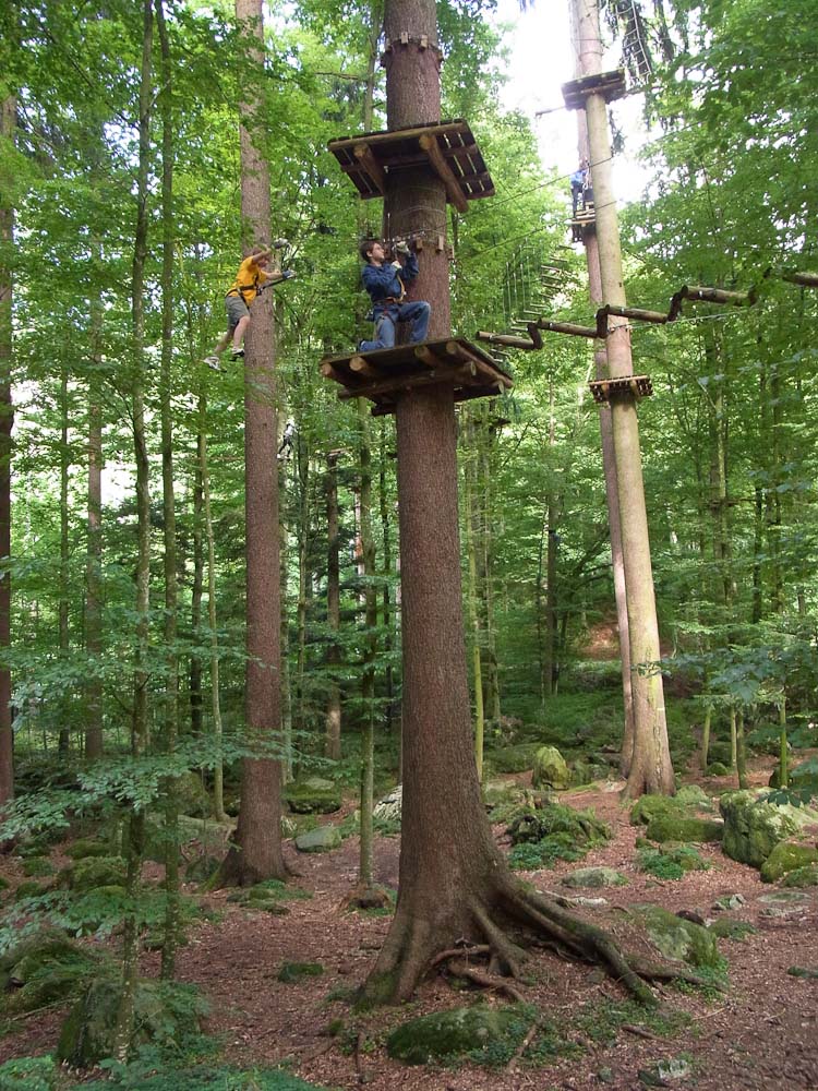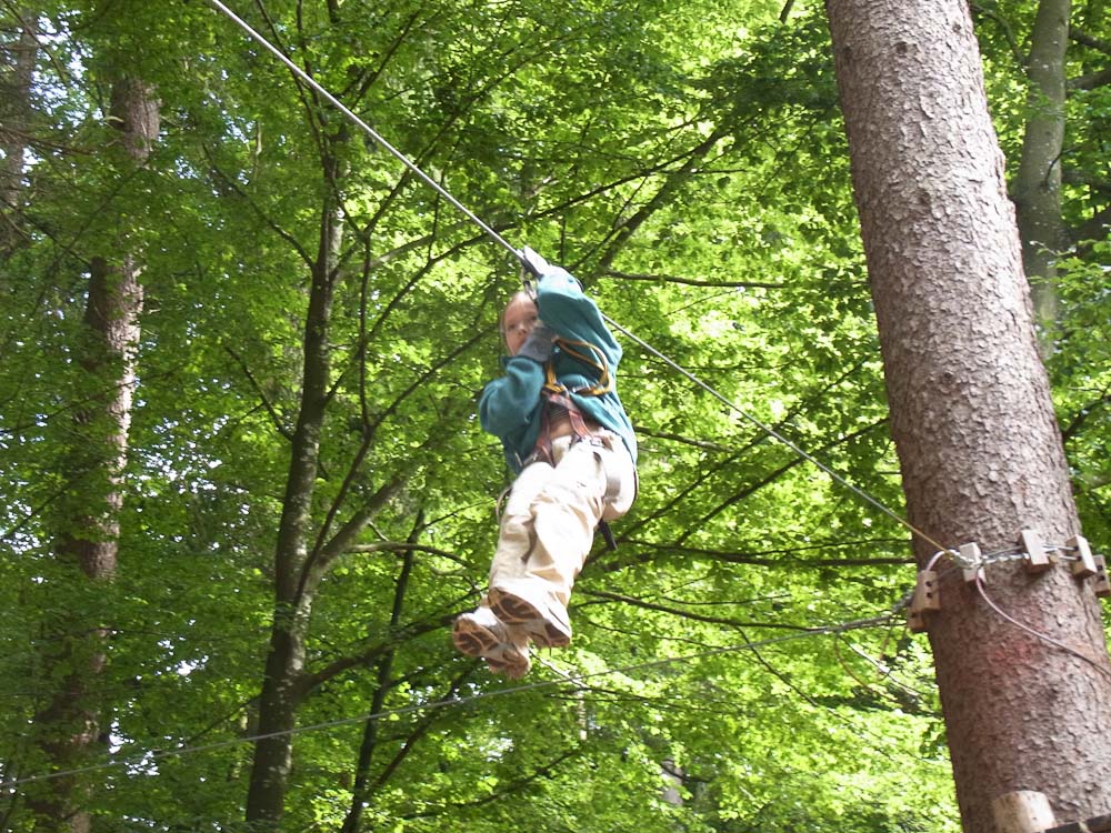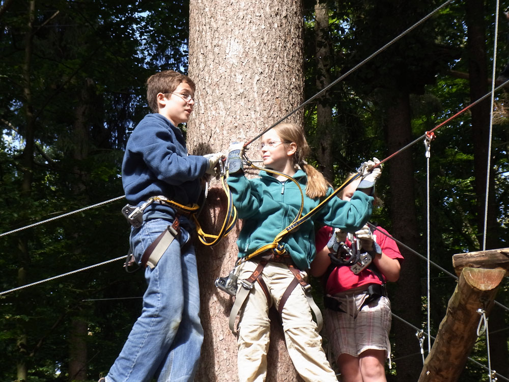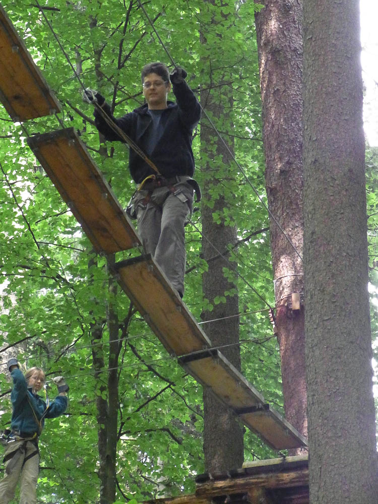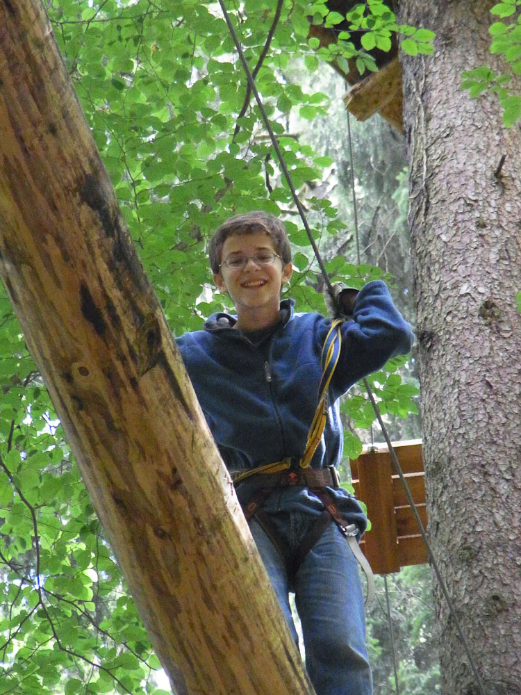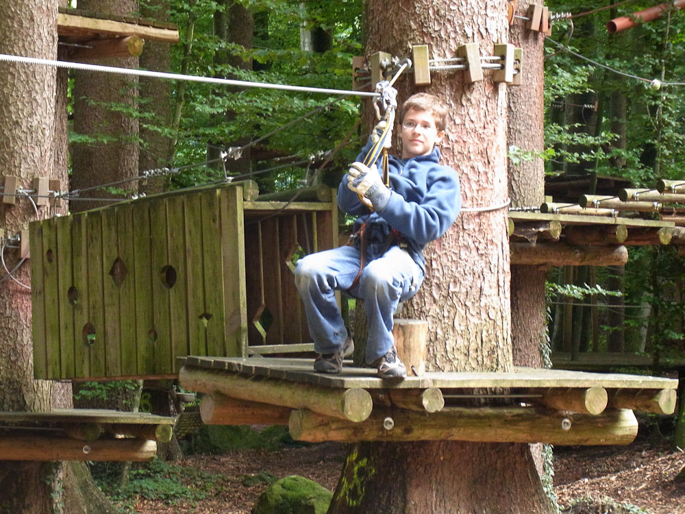 After our snack we followed my Dad as he TRIED to find the ropes course. As we traveled in endless circles of misery and exercise around the city, my mom and I amused ourselves by watching the paragliders flying and landing in the park. Now, for most other countries you would be jumping off a tall tower or structure, in Switzerland you jump off the top of a mountain. We asked for directions to the Ropes Park, or Seilpark in German. The lady we asked pointed in the right direction and soon we were at the front desk of the ropes course.