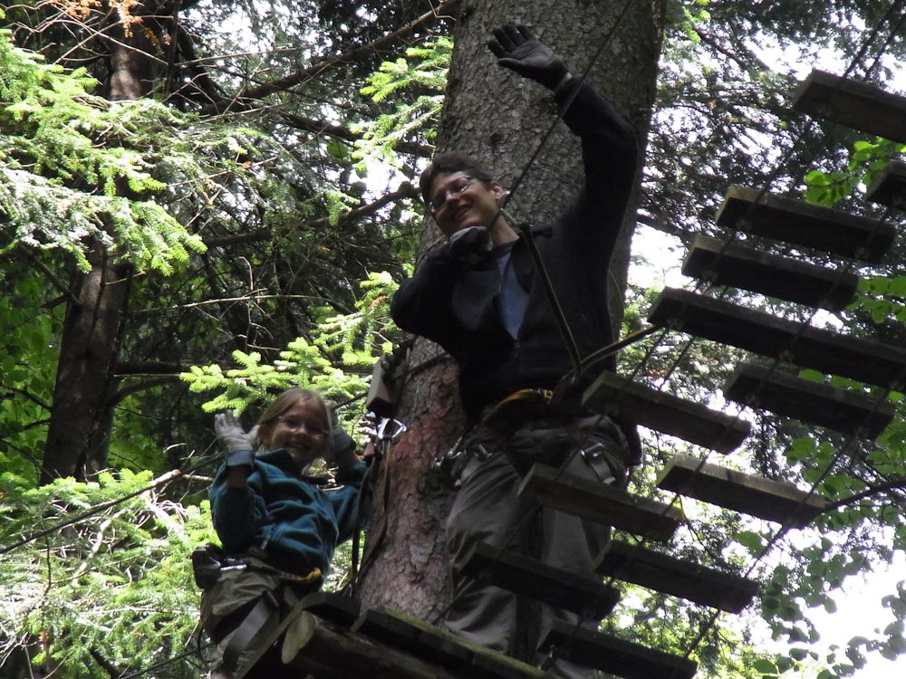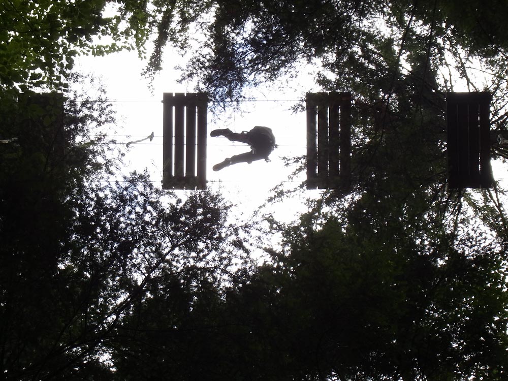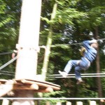 My Dad and I were still in the mood for adventure, and so we decided to go on the Squirrel and Flying Fox to end things off. About seventy-five percent through the Squirrel I was convinced that I had stumbled upon a course only possible for actual squirrels. The obstacles were hair rising and being 60 feet in the air didn’t help either. I do admit though that not all the obstacles were that bad. One really fun obstacle had you swing like Tarzan, except on a rope, from platform to platform. Anyhow, we were seventy-five percent through the squirrel when it intersected with the Fox. My father and I made a heat-of-the-moment decision and zipped down on the Flying Fox zip lines.
