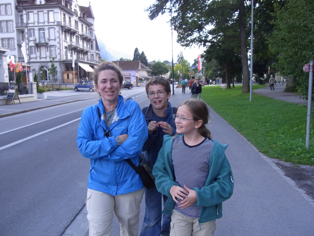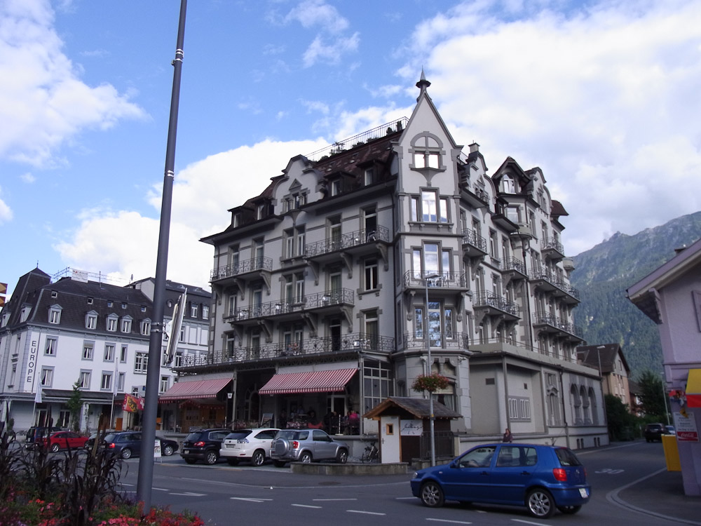Yesterday we went to a ropes course in Interlaken. After missing our first train and taking several trains we arrived in Interlaken Ost. Unfortunately our directions were from the other station Interlaken West (!) but we did not realize that. We started towards the middle of the city looking for a quick snack. Eventually we stumbled upon a greasy little hamburger place but we were too hungry to care.