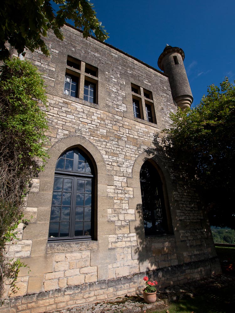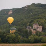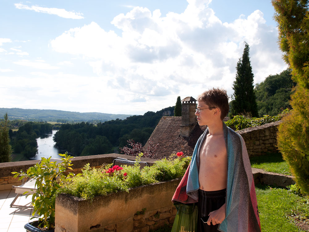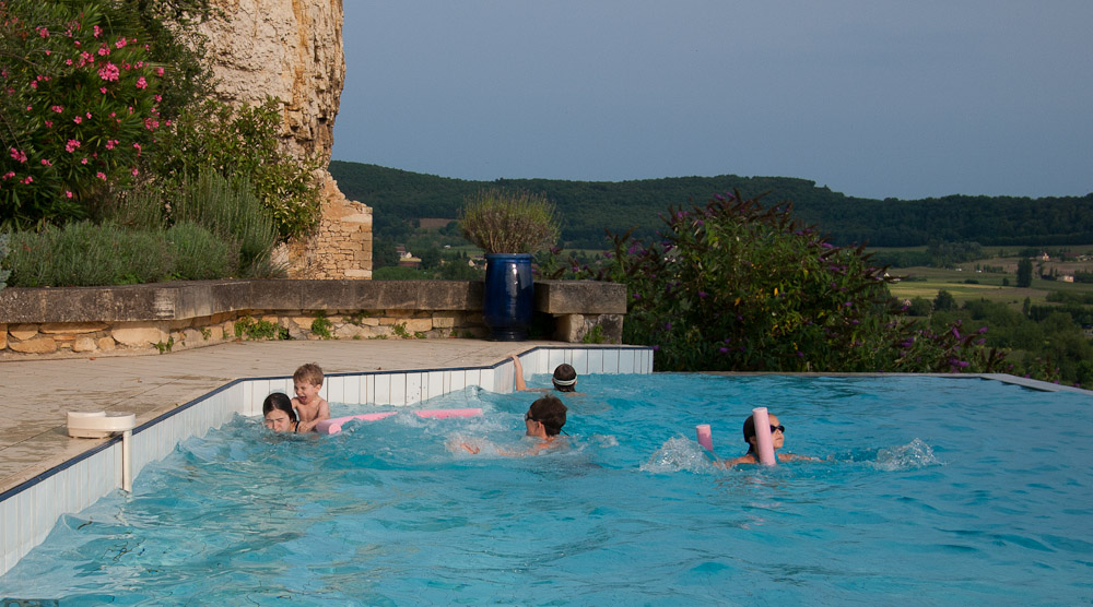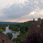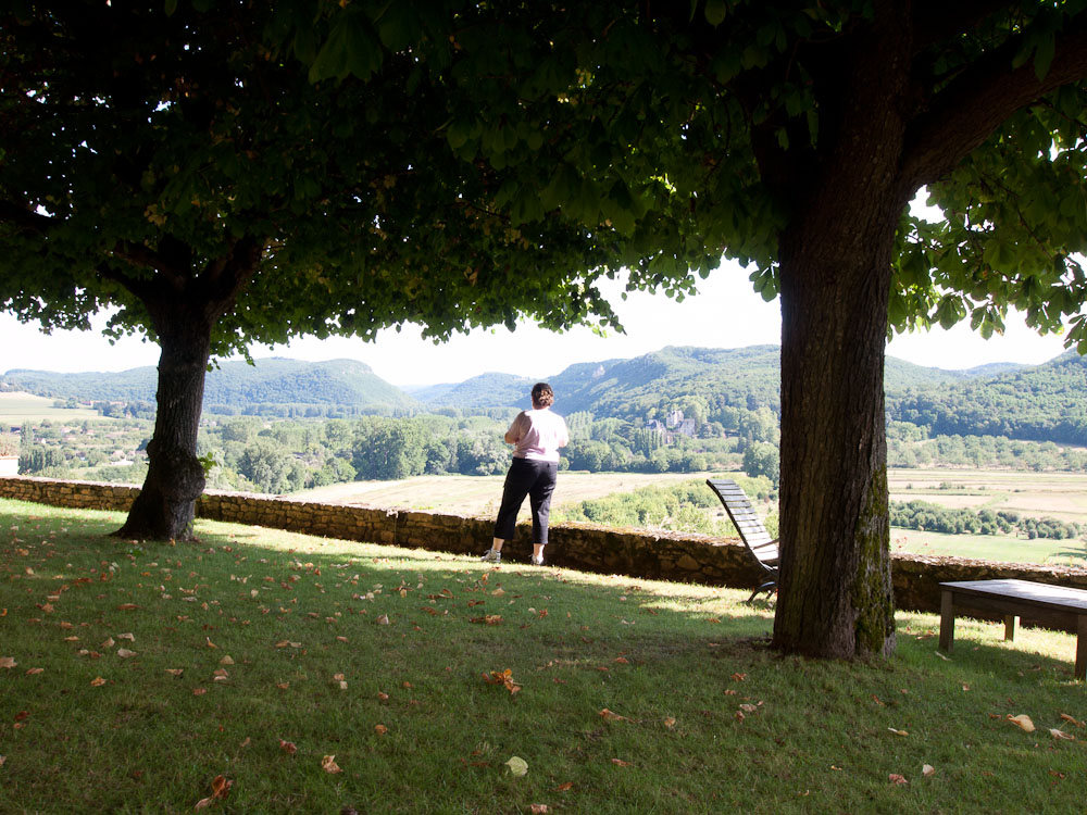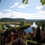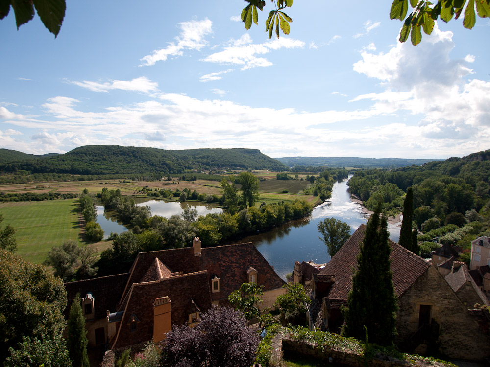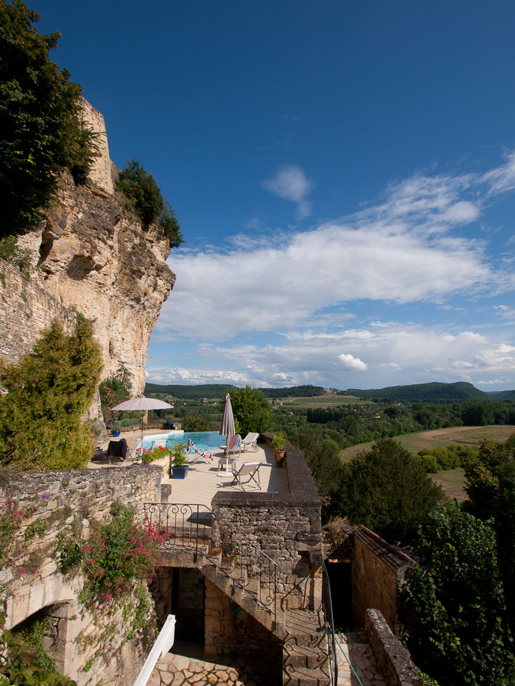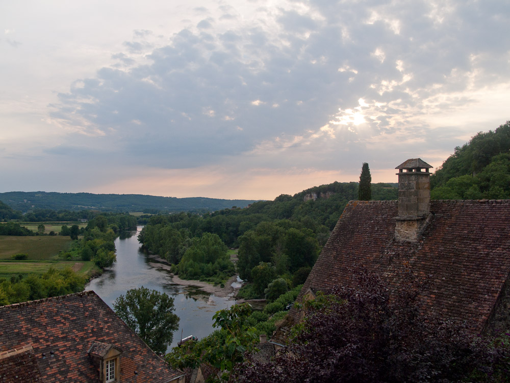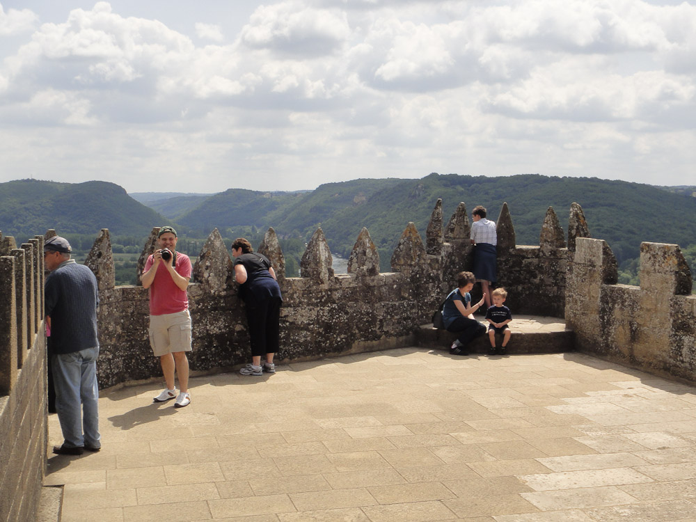Beynac remained in French hands throughout, whereas Castelnaud was controlled by the English enemy at times, so we were echoing history when we studied the opposite castle. Perched in this hilltop manoir we could watch canoes paddling down the river, martins swooping through the sky with quick turns, and hot-air balloons crossing the valley at sunset.