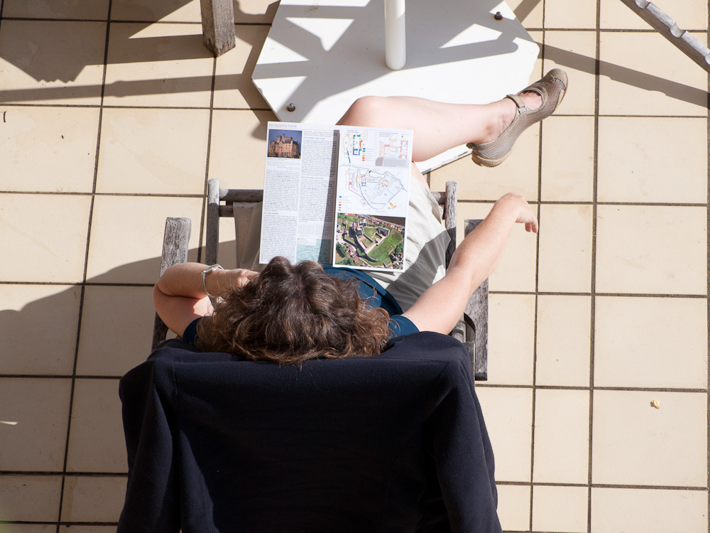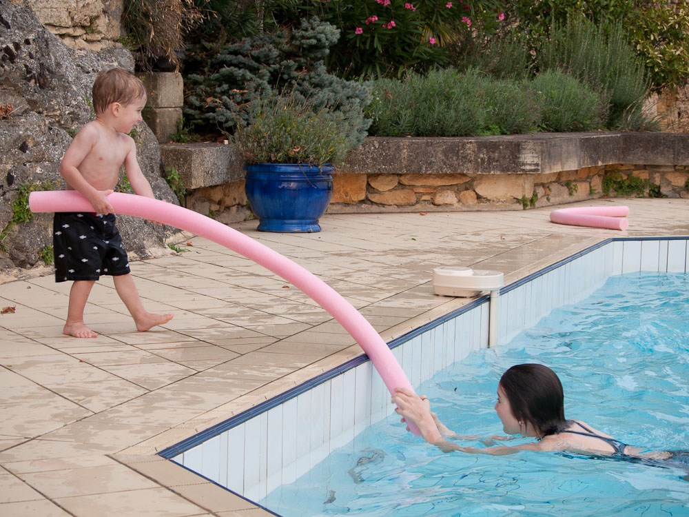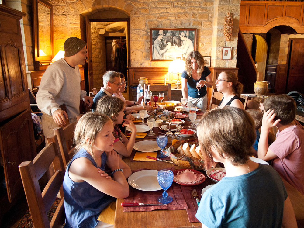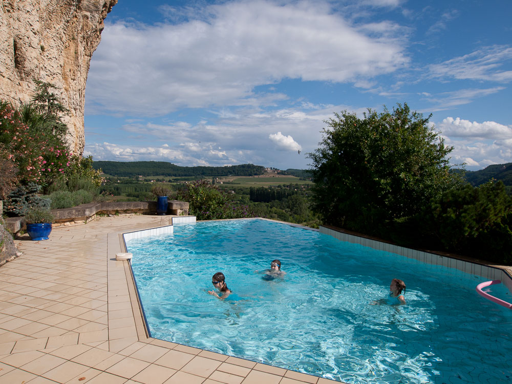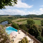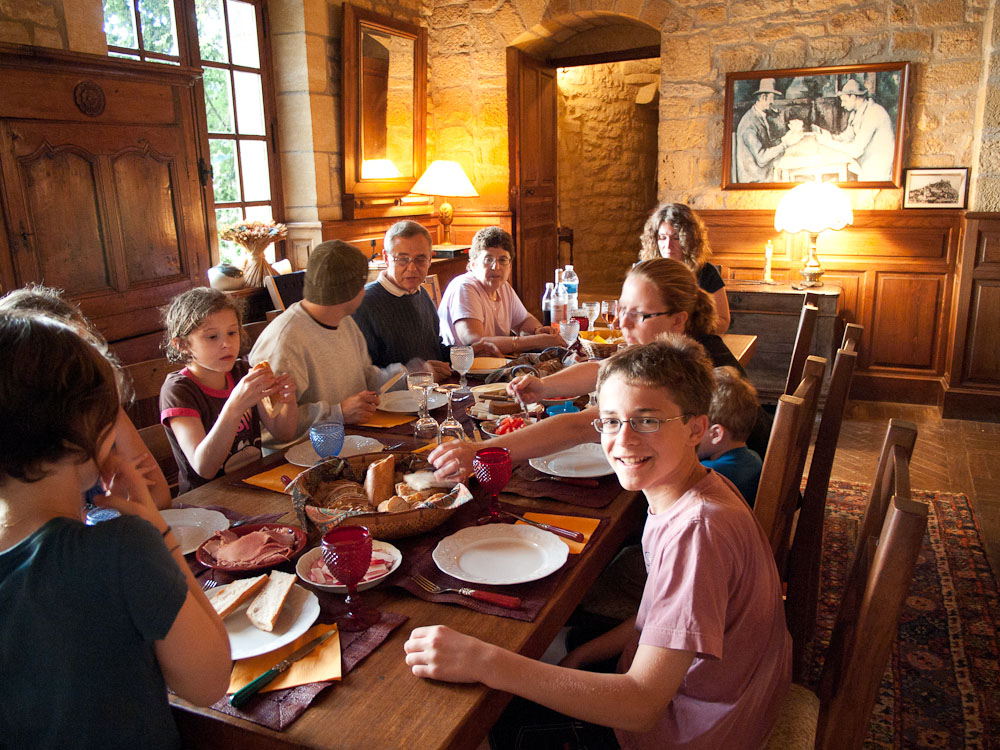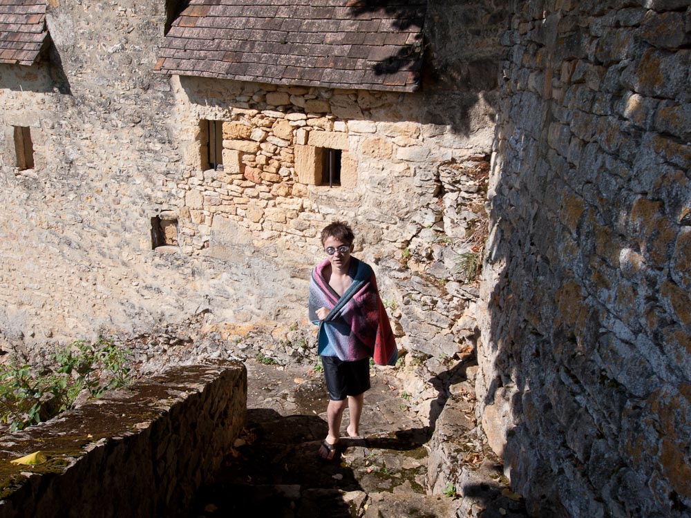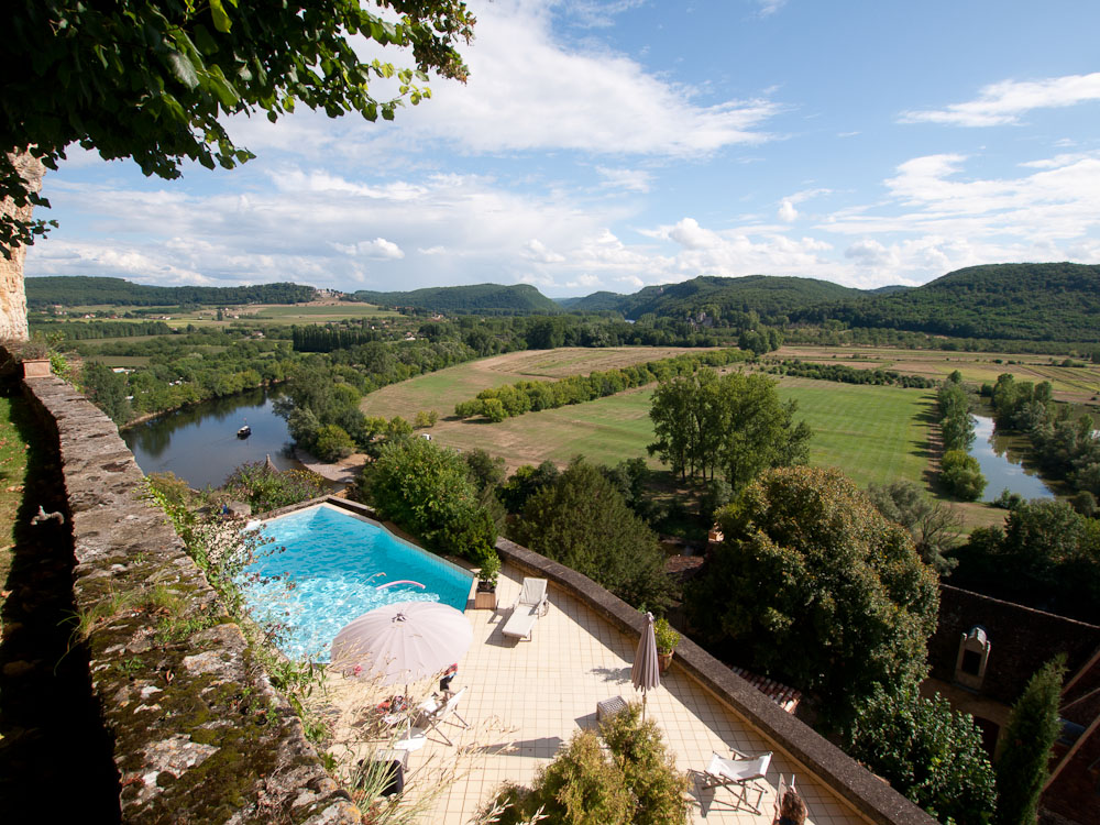 Beynac remained in French hands throughout, whereas Castelnaud was controlled by the English enemy at times, so we were echoing history when we studied the opposite castle. Perched in this hilltop manoir we could watch canoes paddling down the river, martins swooping through the sky with quick turns, and hot-air balloons crossing the valley at sunset.