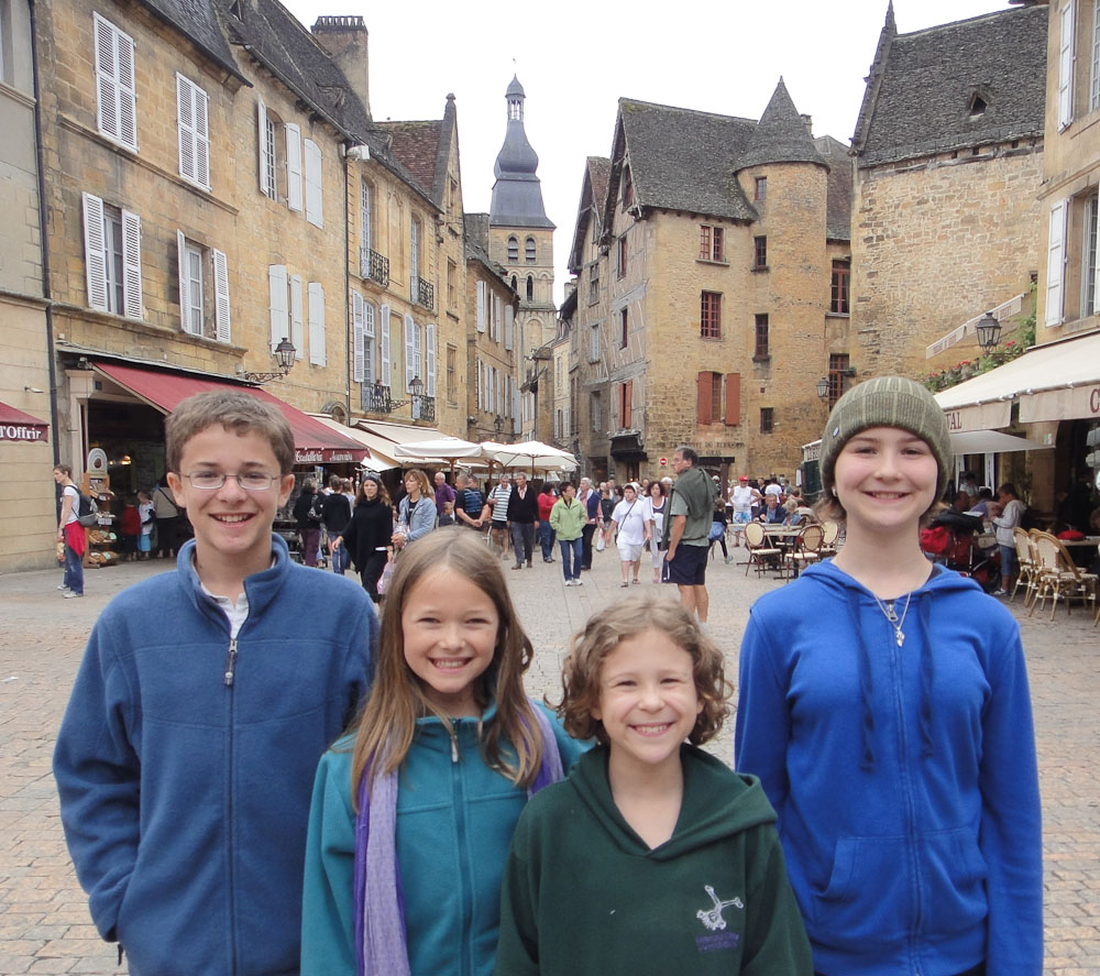 We hopped a flight from London to Bordeaux, rented a caravan of cars, and drove into the countryside of southwestern France. This is Aquitaine, the region controlled by the British during the Hundred Years War, a period of time when related royal families in both Paris and London had a legitimate claim to rule France. Cutting across the Aquitaine is the Dordogne River, meandering through rolling green fields, forested hills and limestone cliffs. The cliffs here are pocked with caves; Neanderthals lived here 50,000 years ago and they have been inhabited since.