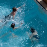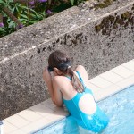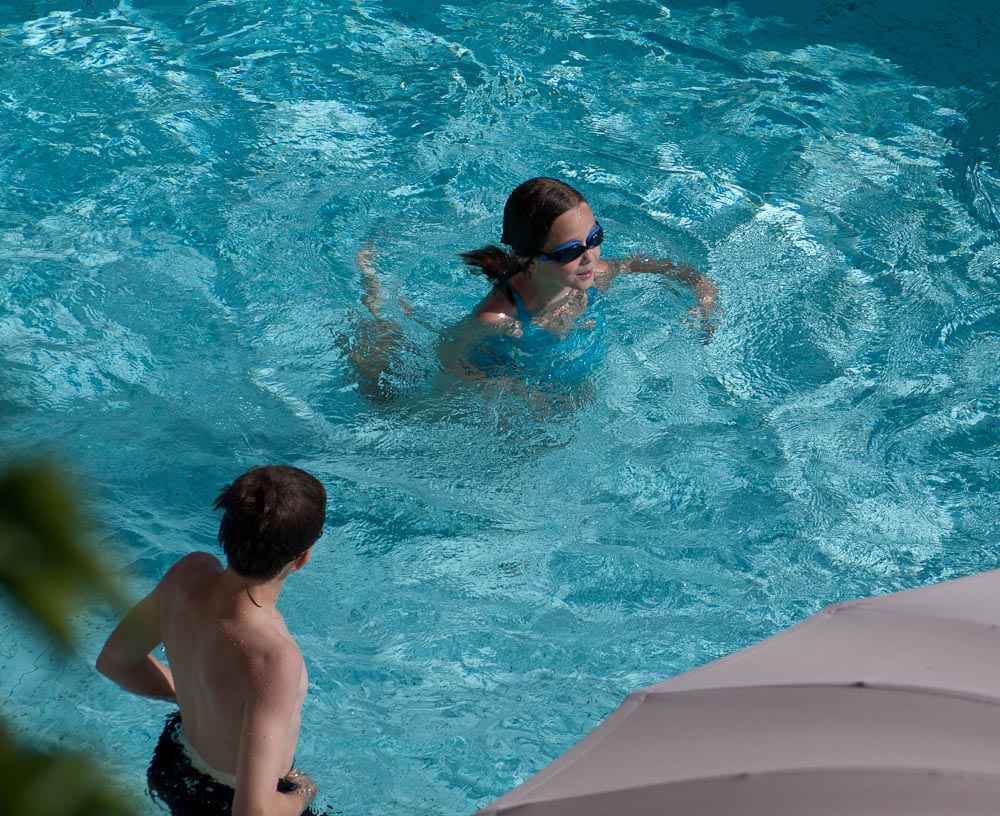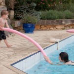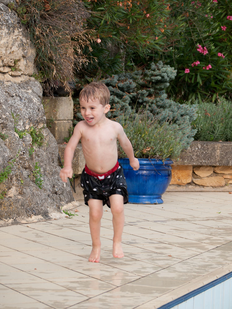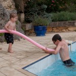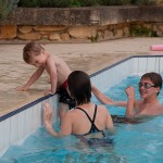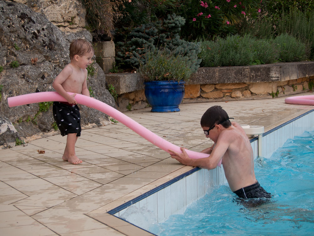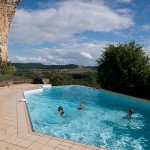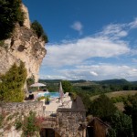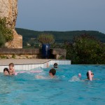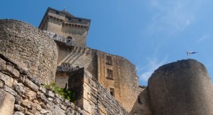 We did some light touring each day and spent most afternoons at the pool. The Chateau de Beynac (left picture below; photo taken from the walls of Castelnaud) had to be our first stop – just a 5 minute walk uphill. The walls are impressively high – the comforts starkly absent.