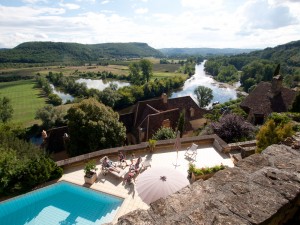 It all adds up to a fabulous vacation spot. We went there for a week of relaxation, bridging the high-energy city tours of London and Paris. To enjoy the region in style, we rented an ancient nobleman’s manoir attached by stoneworks to the famous Beynac Castle. The grounds and pool commanded a hilltop view of the Dordogne River passing Beynac Village, which is in the center of the region. Across the valley we could see the Chateau Vezac and the Castle Castelnaud.
