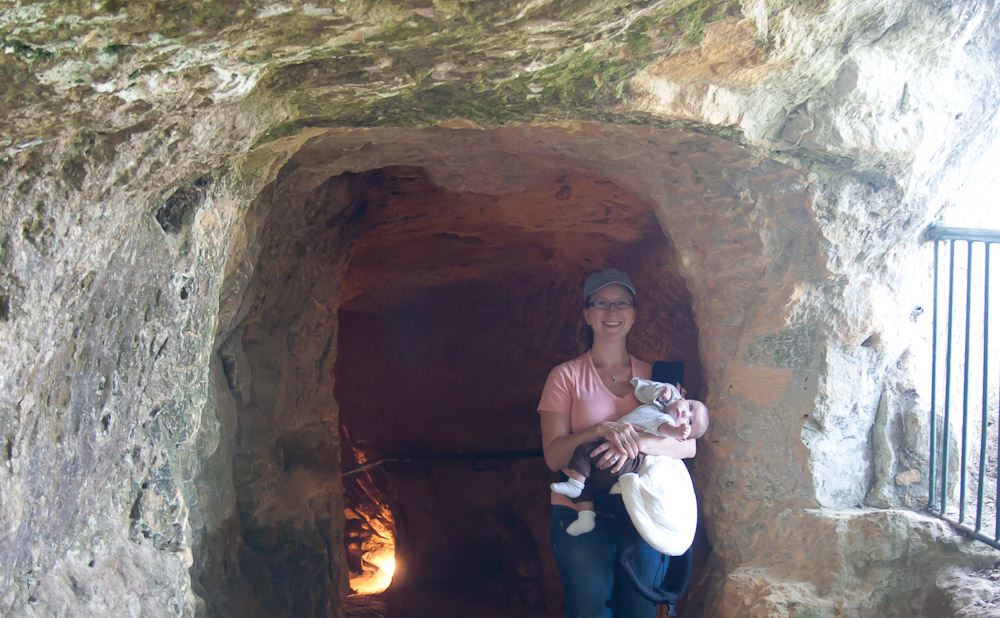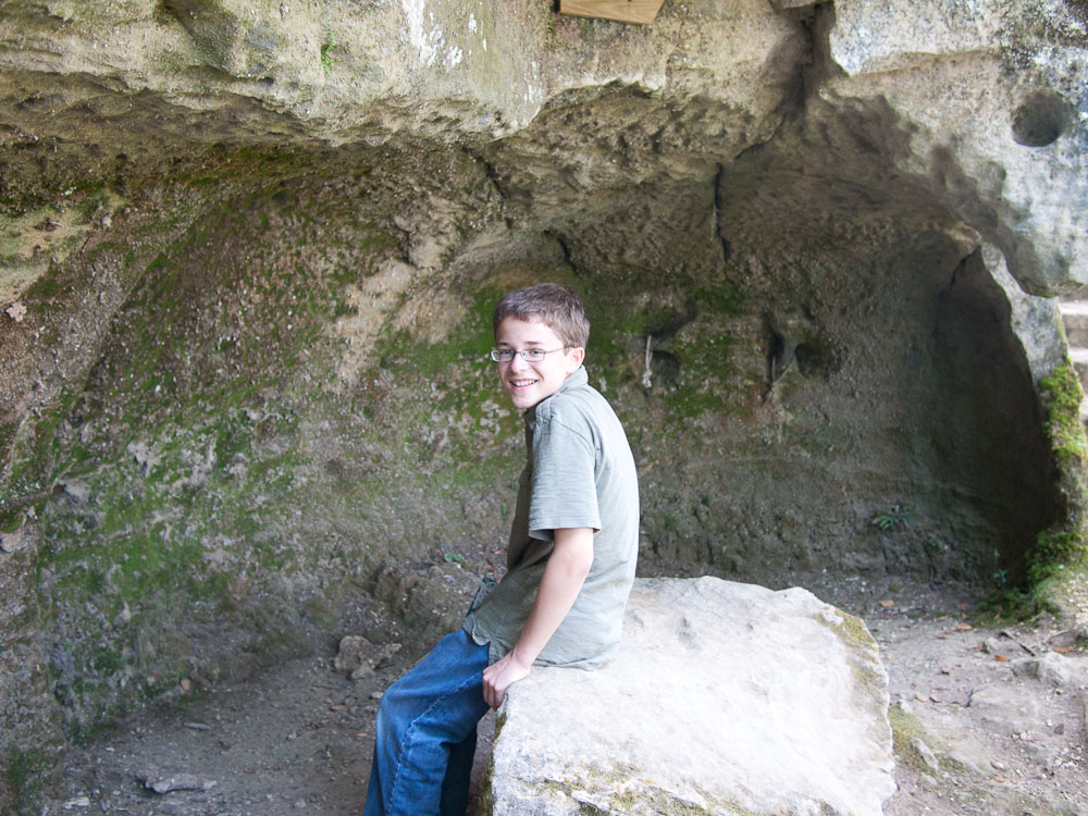 After a decadent lunch at a 17th century mill we continued the prehistory day at La Roque Saint Christophe - a deep fissure running 300 yards long in the cliff face above the river; people lived inside the fissure dating all the way back to Neanderthal times 50,000 years ago. (see left picture below) Later a medieval community of blacksmiths, potters, tradesmen and merchants lived here. With catapults and stones threatening all boat traffic on the river, the town must have earned a great deal in tolls as well.