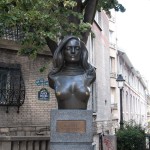 However the most important activity there, owing perhaps to the vineyards and plentiful local wine, was drinking. This was the site of the famous Moulin Rouge. Many other cabarets sprang up such as the Lapin Agile. At the turn of the century a large church was built there - a famous landmark you can see easily from the Eiffel Tower - perhaps in response? At the same time, Montmartre was becoming a hotbed for artists, some living freely together in communes. The talent in Montmarre included Pissaro, Picasso, Modigliani, Van Gogh, Matisse, Renoir, Degas, and Toulouse-Latrec. By now you may also recognize Montmartre as the setting of La Boheme, the same story that inspired Rent. More recently French film star Dalida lived here and has a statue you can rub for luck. Poet Langston Hughes (assigned reading for Natick 7th graders this year in Term 1) lived there for a while as well.