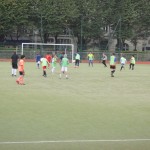 I saved two goals with my knee by accident but other than that I tried to stay out of the way. I did that because it wasn’t very organized and the boys were pushing and punching. After a while I got bored so I told myself that for every step I took away from the ball I had to take two steps towards it. That worked quite well!
