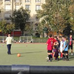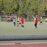 One of the kids continued to pass the ball much harder than needed so when I got the ball I made a “other-way”, gesture with my finger, and passed the ball, quite hard, to him. I would have been fine with having it bounce off of his shin guard and roll away, but he missed it by 5 inches and it rolled all the way to the running track. After that he passed much softer and we went through the rest of the drills pretty easily and well.