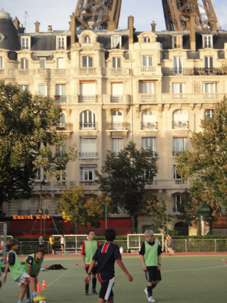Yesterday I thought of the Natick Stiffs as I went to my first French Soccer practice. I had just come from my French lessons with our teacher Blandine, so all the other kids were sitting on the field in a big clump already. I handed my mom my water bottle and fleece and jogged out to the clump of people waiting to kick my butt.