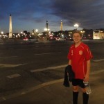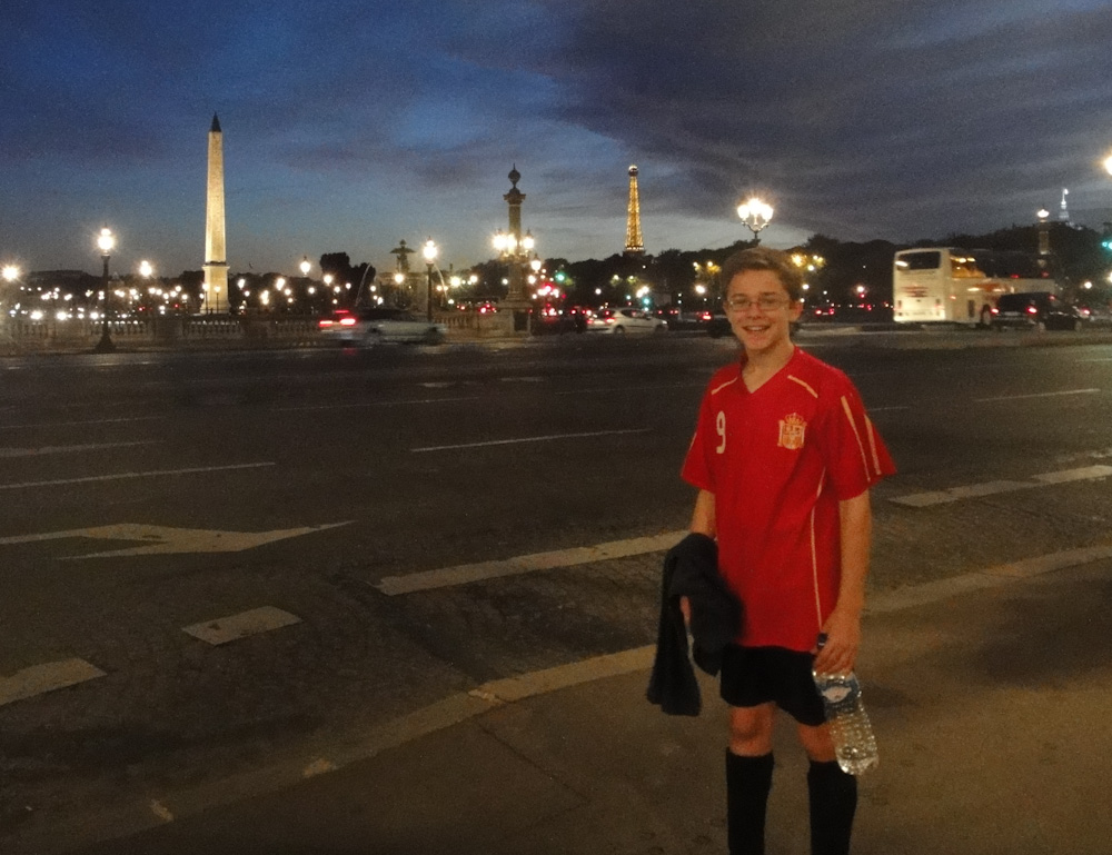After the scrimmage we put back the soccer balls and pinnies before sitting down in the middle of the concrete-with-a-tiny-bit-of-turf-and-sand-and-tiny-rocks-over-it field. I went over and sat with two people I had made sort-of friends with during the practice, both of whom spoke English. We talked until the coach came over and pointed at my Torres soccer shirt while saying something in French. He laughed, and I turned to Alexander for a translation. “He says that shirt is too good for you, but don’t worry he says jokes like that all the time. One time I wore a USA shirt on the day USA played Ghana and he booed me.” Then a third kid talked to me a bit before the coach came back over. He smiled and asked me where I was from in the USA. I said Natick Massachusetts, which made him point to his socks and say “Massachusetts!” Apparently “sock” in French is Chaussette. Then he started listing off cities along with some other kids. The list included, “New Orleans, Las Vegas, California, and the California girls.”