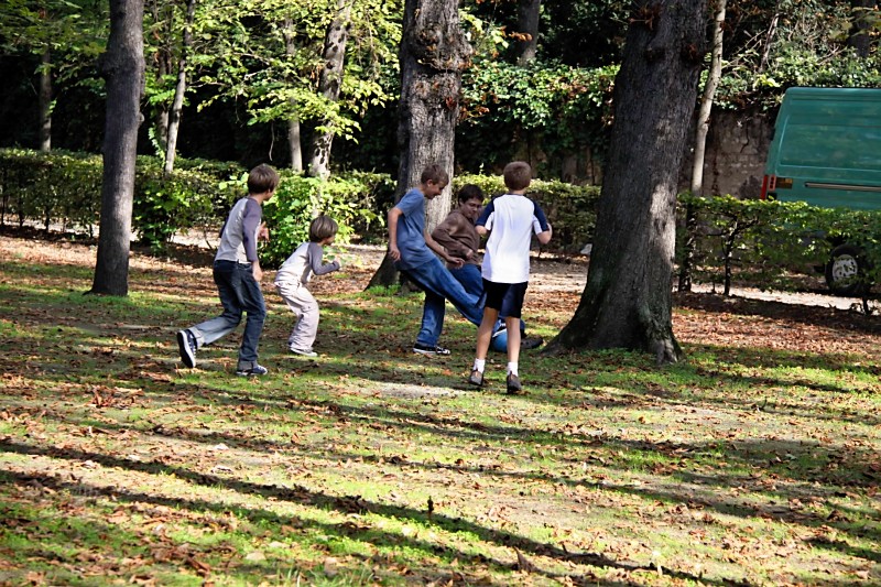 When we finished looking we saw a sand box, and were going to gloomily use it until our parents were done, but we really wanted to play soccer. And extremely luckily, two boys were playing with a soccer ball, and their dad who spoke English very well, invited us to play! The kids didn’t speak English, but Carter and I had enough French to get us by. (Thanks Blandine!) That makes five boys and me, so to all those people who say I’m afraid to play soccer with boys, I did!