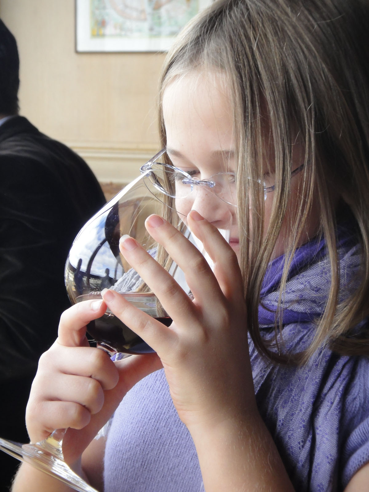 We were ushered to a table at the window with a breathtaking view of the river and the Isle Saint Louis (home of the delicious Berthillon ice cream) and the Isle de la Cite (home of Notre Dame). A waiter came and plopped a colossal book on to the table, worthy to compete against a wrestling team of 10 dictionaries! This was the never-ending book of…not spells…nor math homework, but wine. My dad told him to choose a champagne and red wine for us, and he bustled off, he was in connoisseur mode. Ten minutes later, (our champagne had arrived but we were going to delay the wine for the main course.), we saw the same server put a bottle of wine on a table with a candle. He then lit the candle, and pulled out some glasses. He then proceeded to pour the wine while holding the bottle over the flame. Apparently this was to make sure that the debris at the bottom of the wine bottle, old as the wine was, did not go in to the glass.