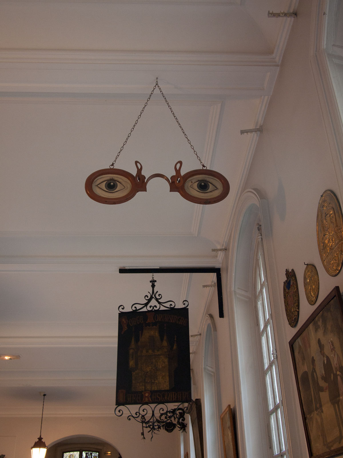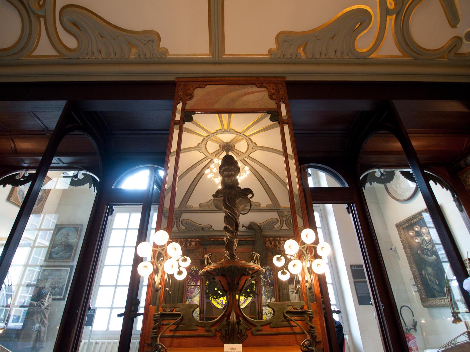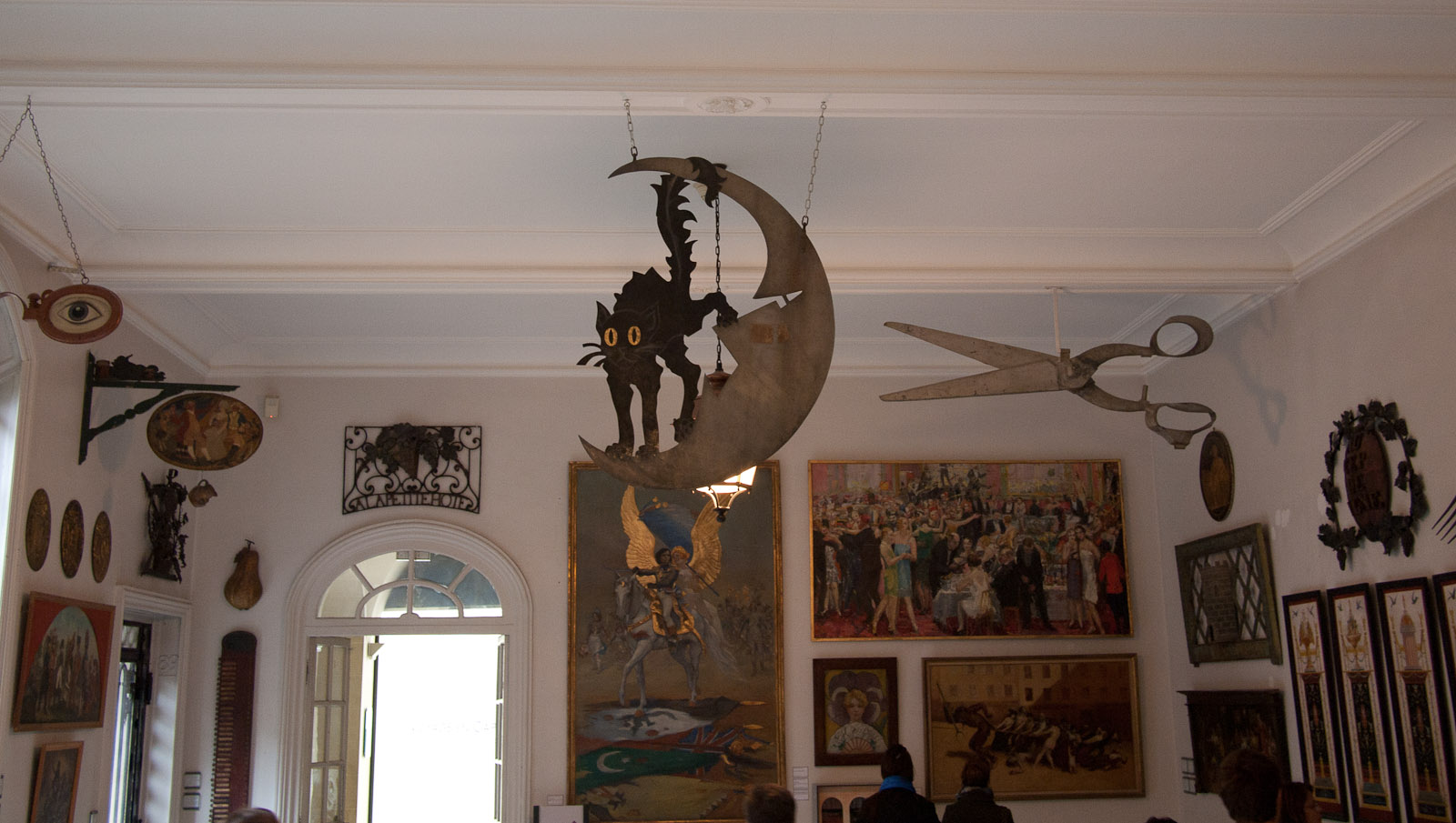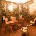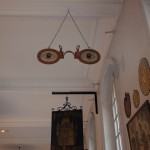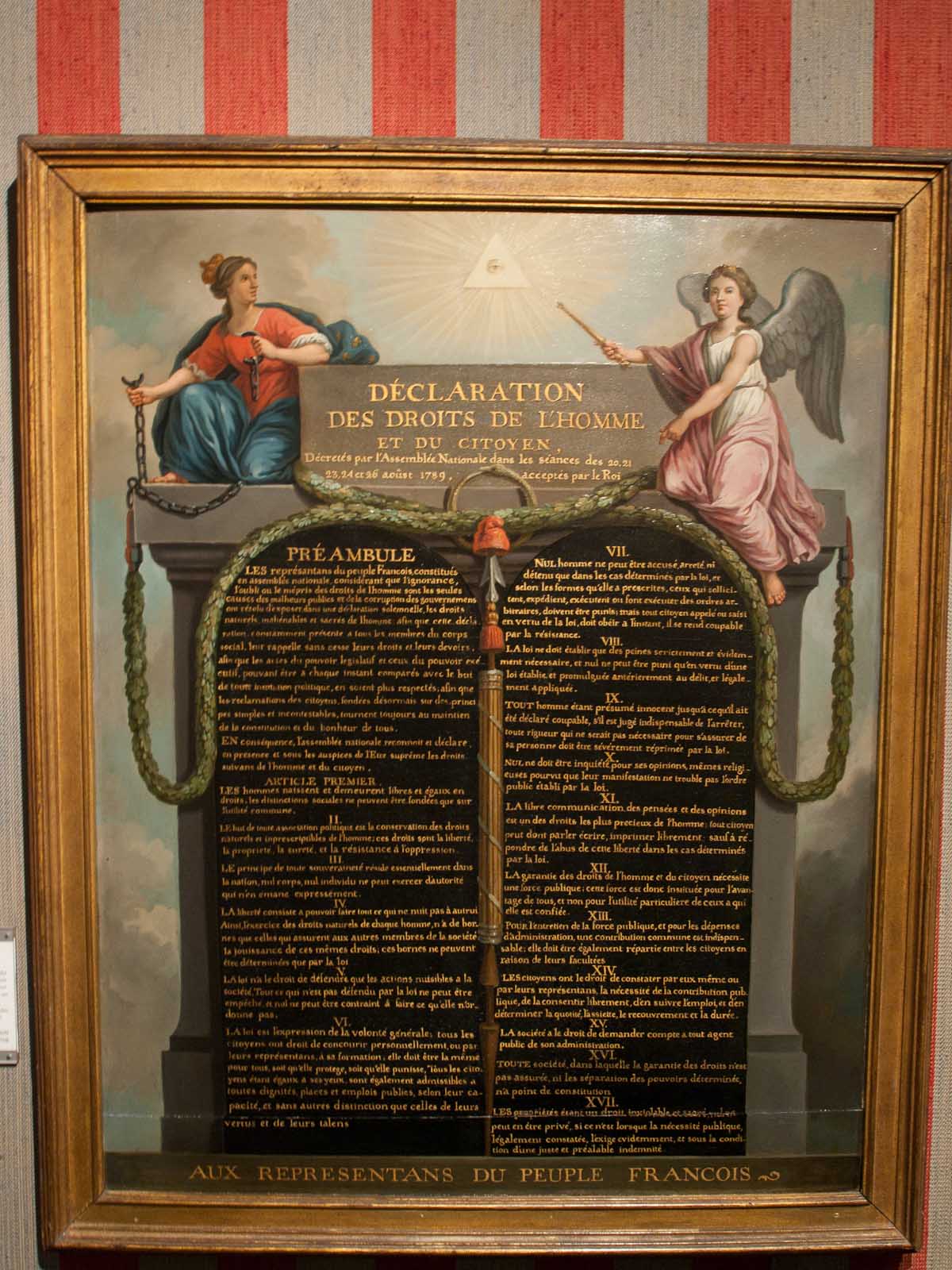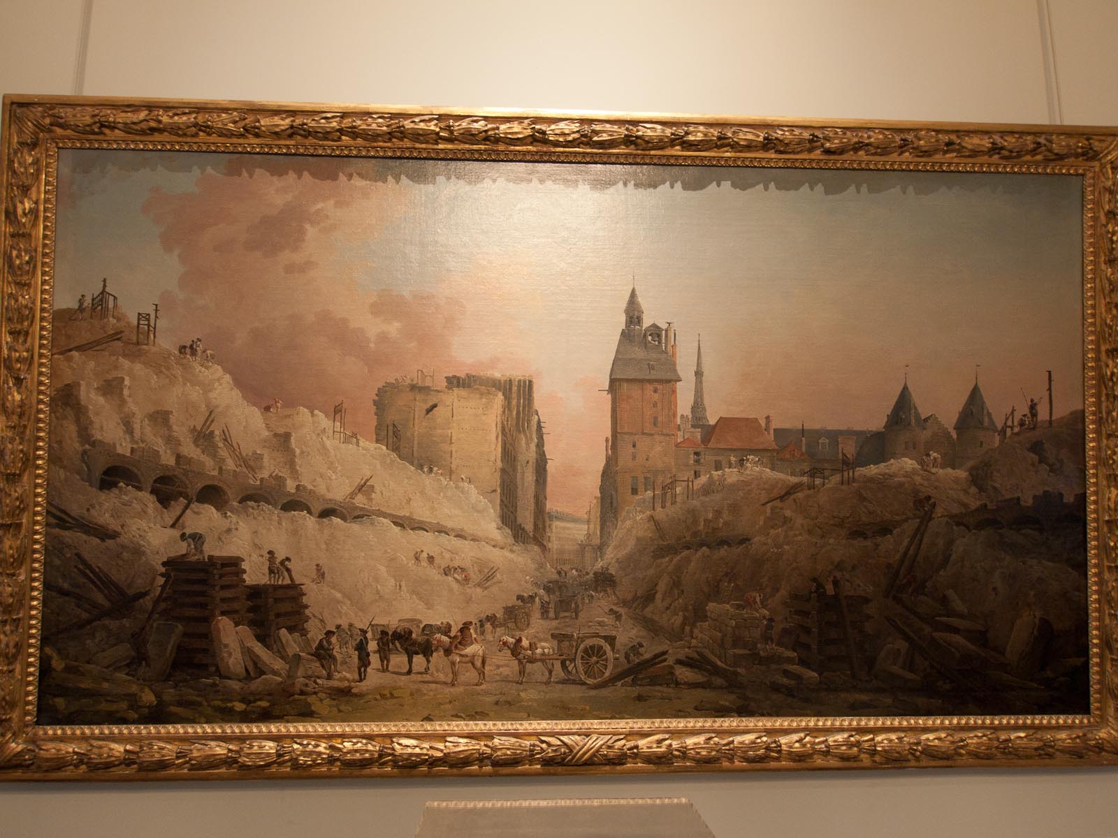 - Musee Carnavalet is the official museum of the city’s history and more or less the largest attic in Paris. Some of the most fascinating exhibits were collected when the architect Haussman knocked down vast swathes of the city to put up the grand open boulevards. Prior to that time the streets were a complex maze, and shopkeepers would put signs outside their doors so people could find them (“meet me at the iron horse tavern”). Of course this became a race among merchants to install the largest, most artistic and most impressive sign! So when Hausmann knocked down so many city blocks, the best were salvaged and Carnavalet ended up with an amazing collection of antique signs as well as a complete store interior for Fouquet (see below). Another set of exhibits here are paintings. It seems like every French painting ever made that shows the city in the foreground (or even the background) ended up here. You can see the evolution of the town very well. Probably the most impressive area is off to one corner on an upper floor, where there is a superb collection of artifacts dating from the French Revolution, including keys to the Bastille, a rope ladder used to escape from the Bastille, painted versions of the Rights of Man that echo the carved stone tablets erected by the Romans to declare their laws, and you can even see the books and toys that King Louis XVI and Marie Antionette and their children used when they spent years in jail after the revolution. Gina was moved to tears by a letter that Marie Antionette wrote the night before her execution, asking her sister-in-law to take care of her children.