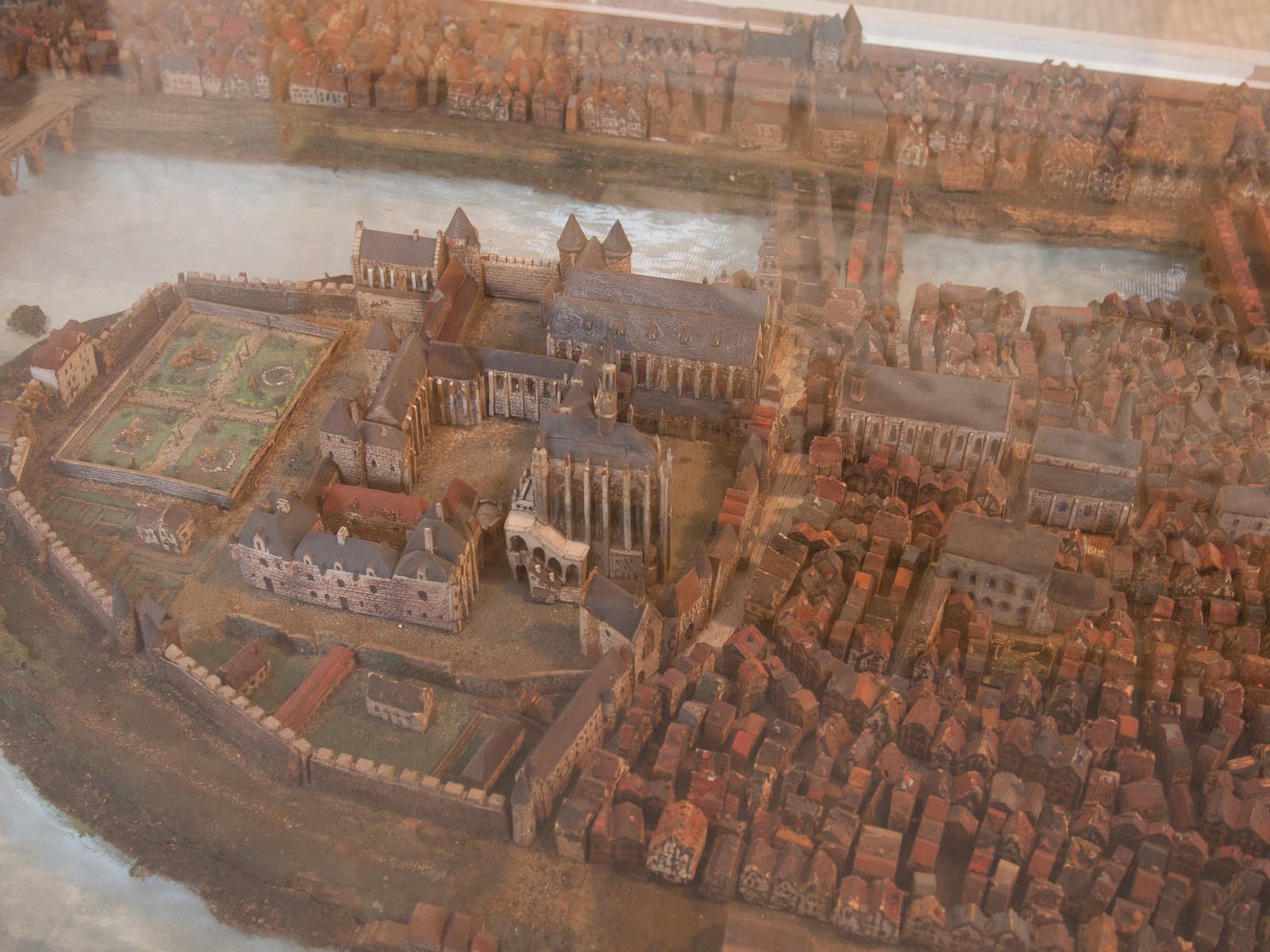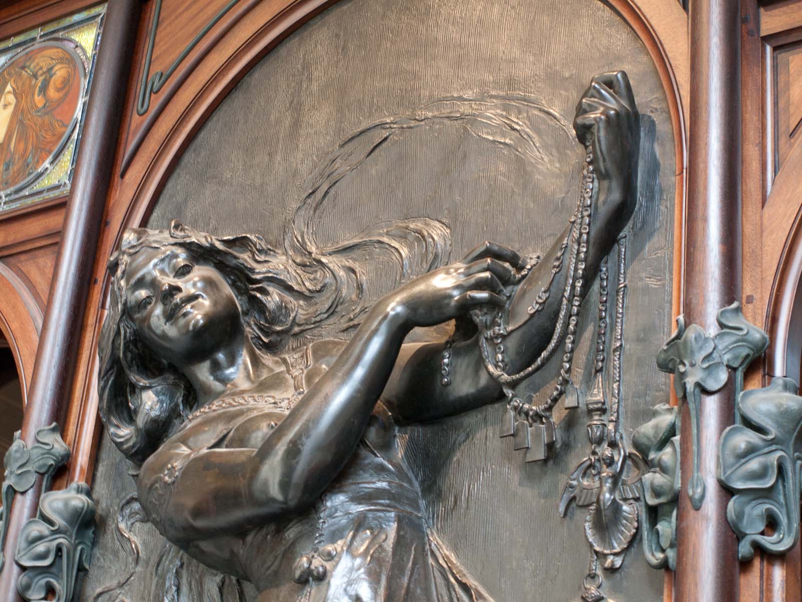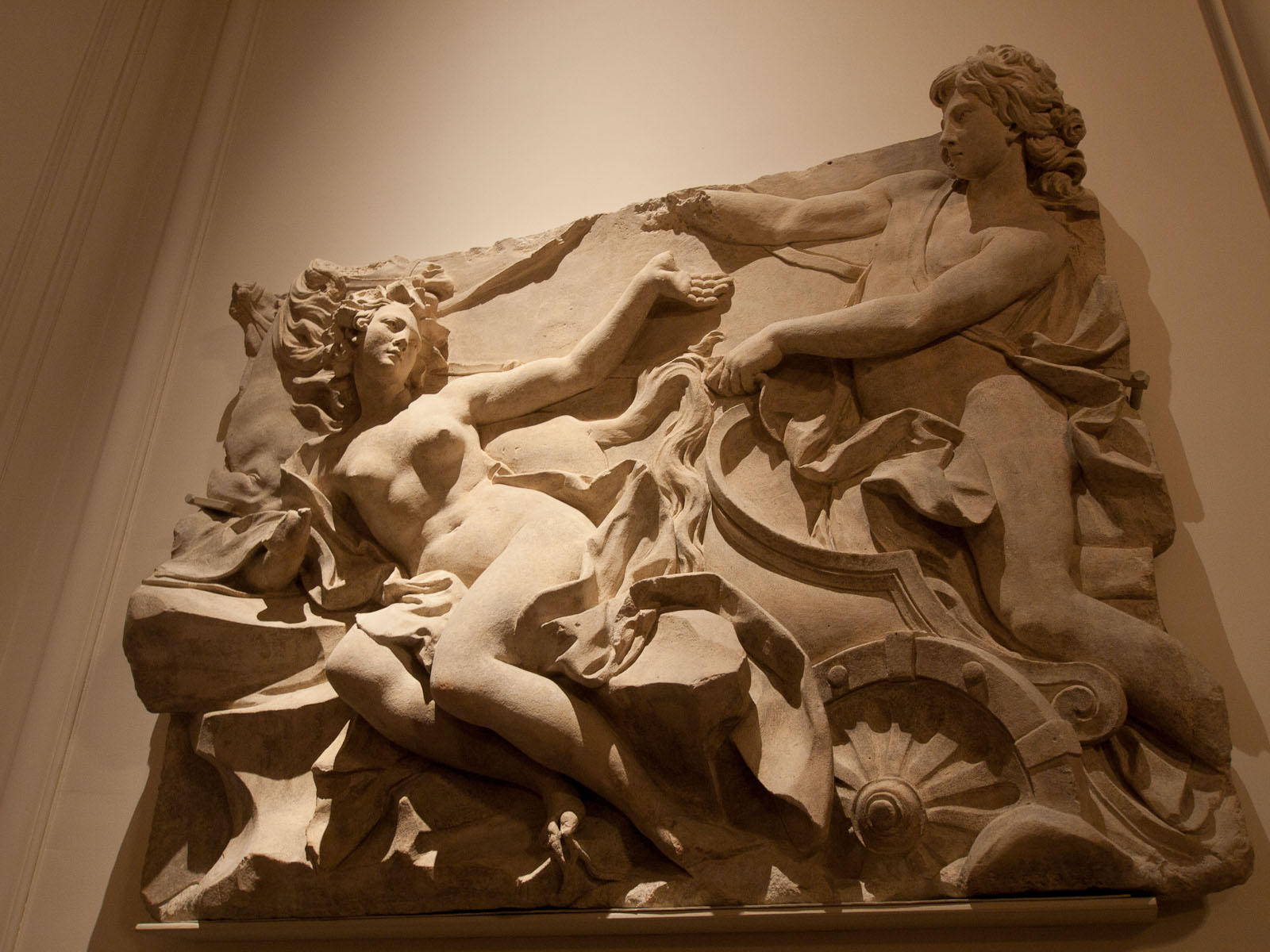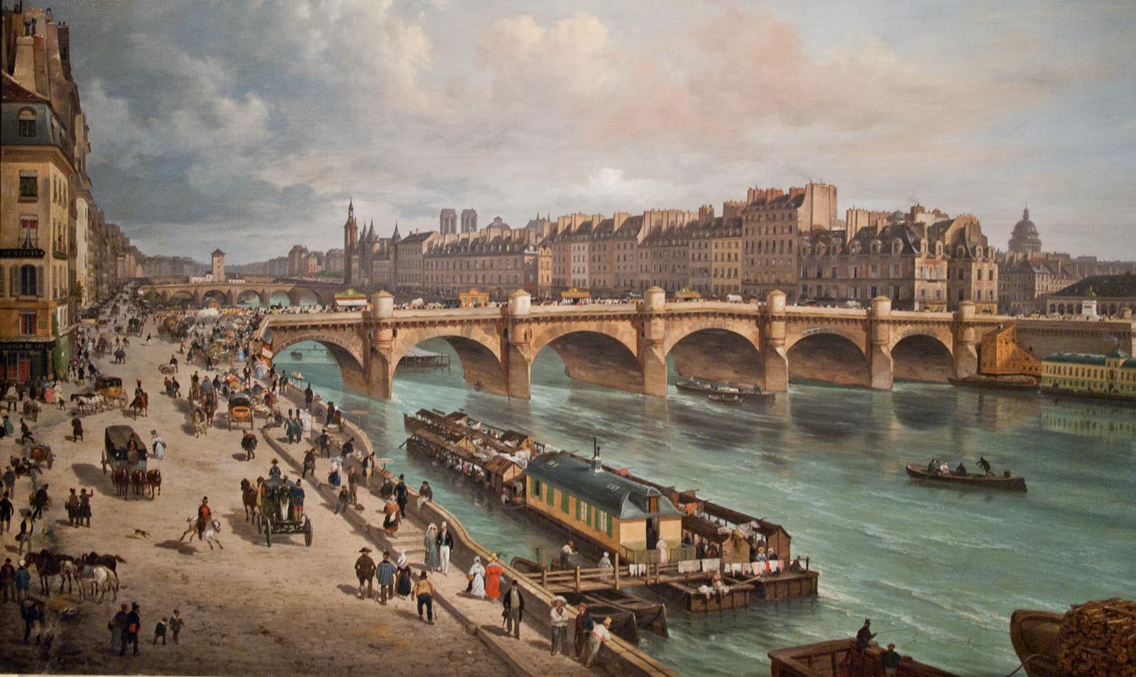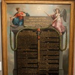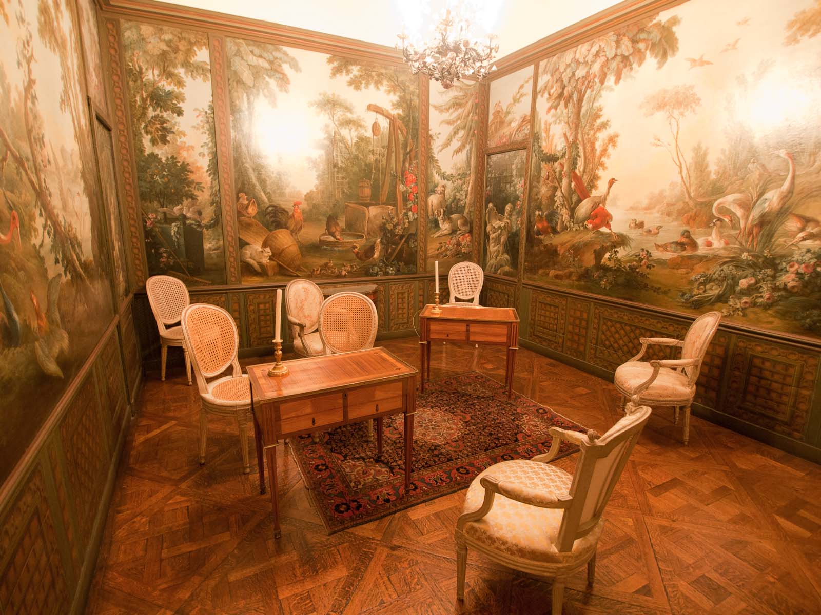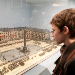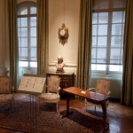 - Musee Carnavalet is the official museum of the city’s history and more or less the largest attic in Paris. Some of the most fascinating exhibits were collected when the architect Haussman knocked down vast swathes of the city to put up the grand open boulevards. Prior to that time the streets were a complex maze, and shopkeepers would put signs outside their doors so people could find them (“meet me at the iron horse tavern”). Of course this became a race among merchants to install the largest, most artistic and most impressive sign! So when Hausmann knocked down so many city blocks, the best were salvaged and Carnavalet ended up with an amazing collection of antique signs as well as a complete store interior for Fouquet (see below). Another set of exhibits here are paintings. It seems like every French painting ever made that shows the city in the foreground (or even the background) ended up here. You can see the evolution of the town very well. Probably the most impressive area is off to one corner on an upper floor, where there is a superb collection of artifacts dating from the French Revolution, including keys to the Bastille, a rope ladder used to escape from the Bastille, painted versions of the Rights of Man that echo the carved stone tablets erected by the Romans to declare their laws, and you can even see the books and toys that King Louis XVI and Marie Antionette and their children used when they spent years in jail after the revolution. Gina was moved to tears by a letter that Marie Antionette wrote the night before her execution, asking her sister-in-law to take care of her children.