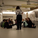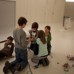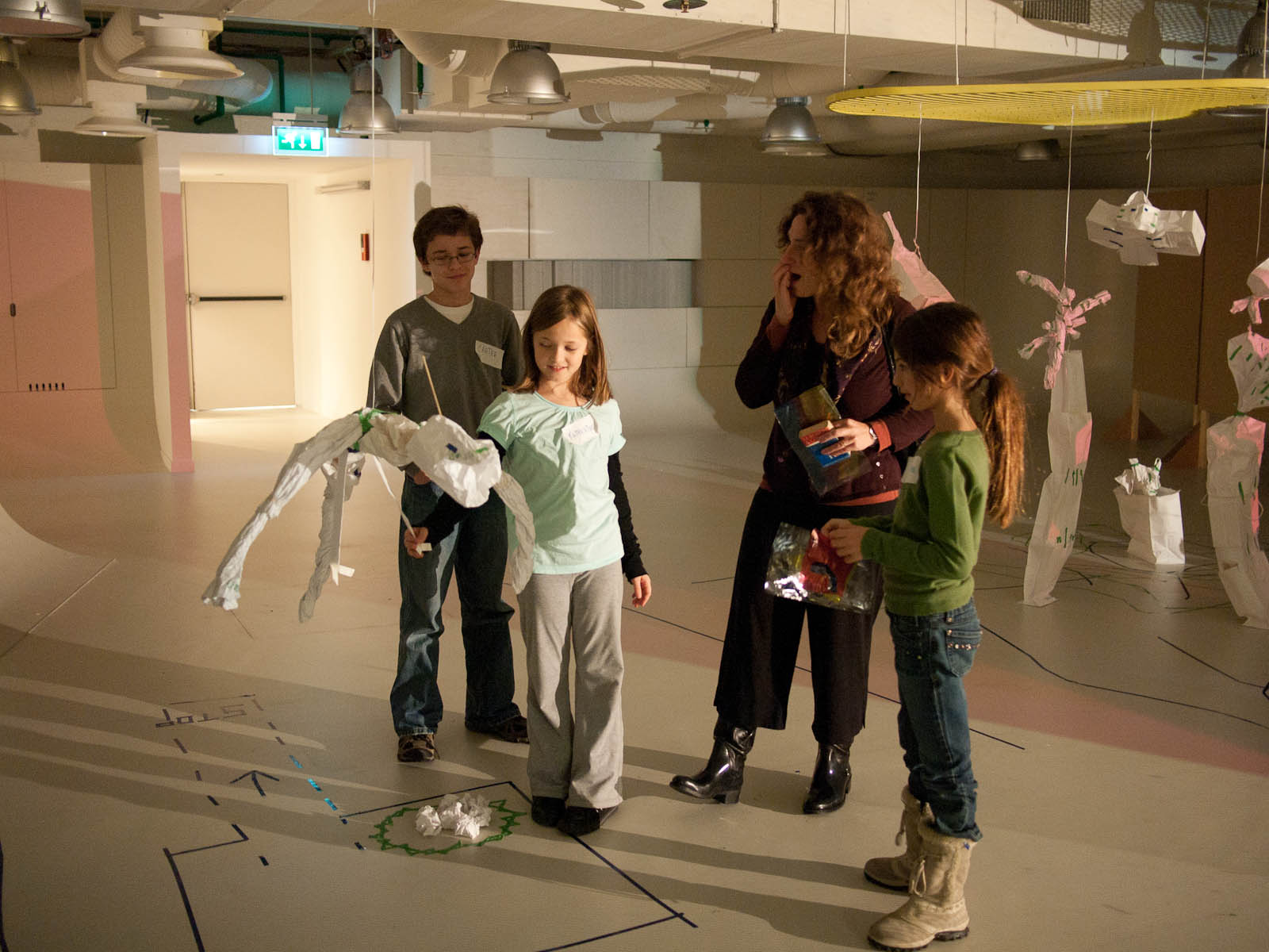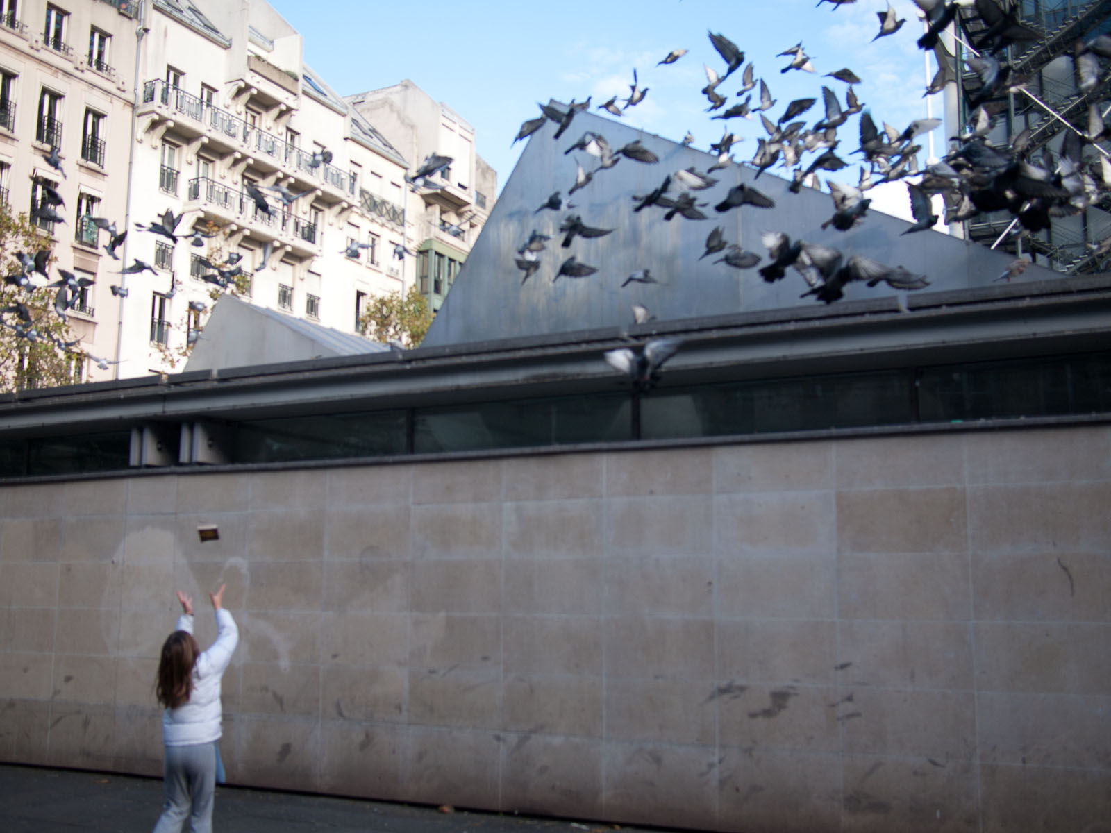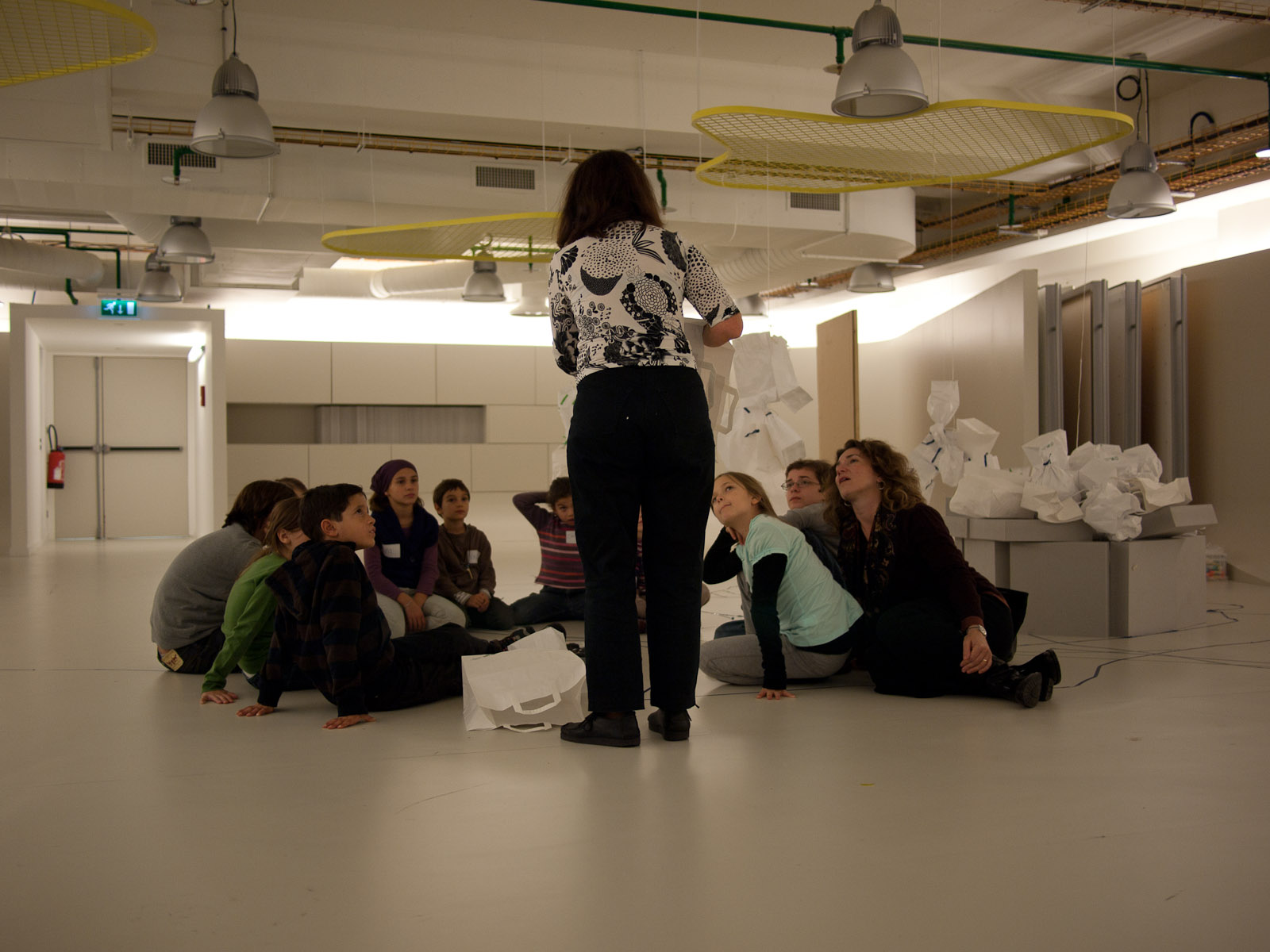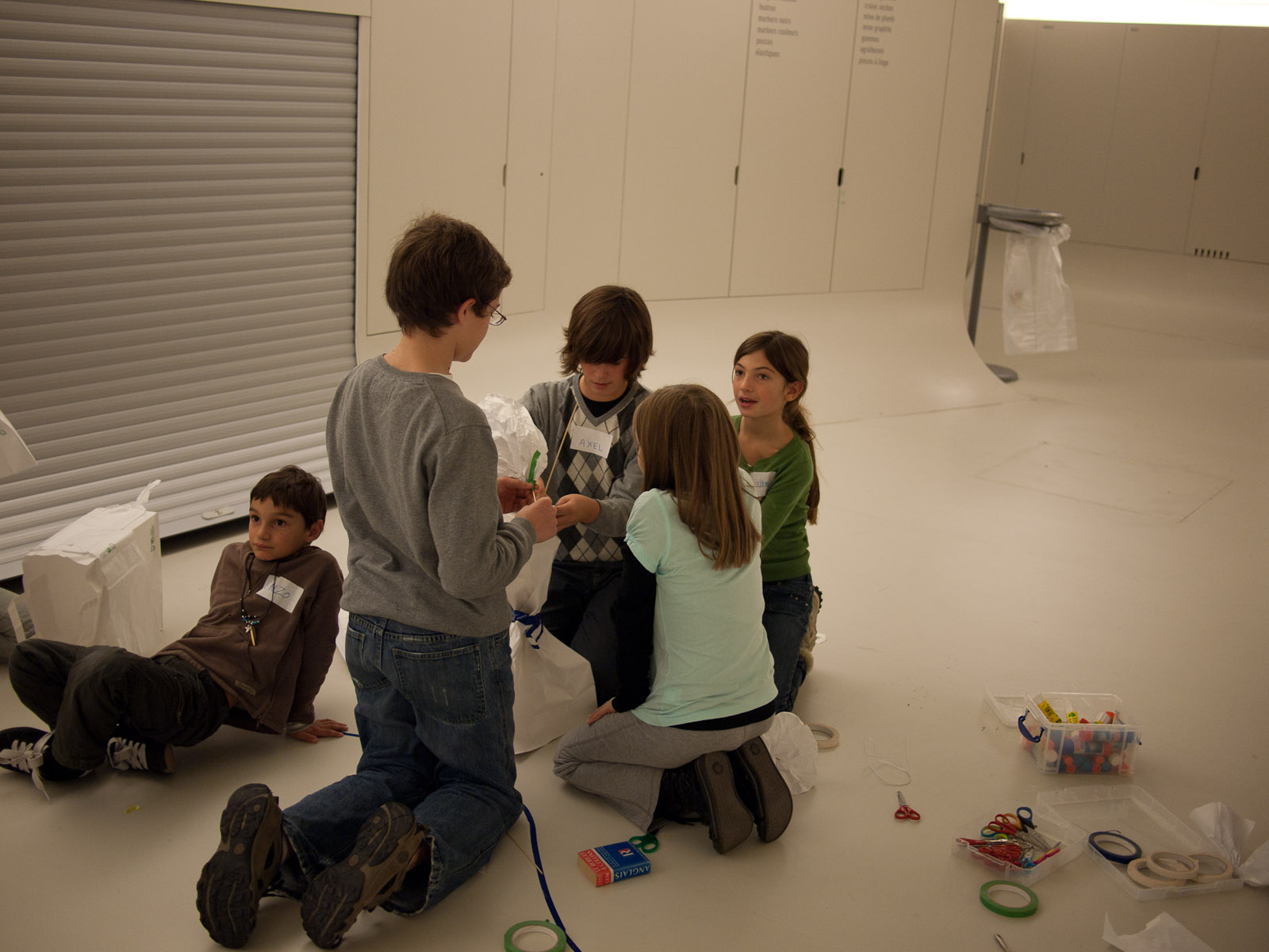 - Atelier at the Pompidou. The Pompidou center is the major modern art museum in Paris. Gina learned that they hold weekly workshops (“ateliers”) for children to learn about art and we were excited for our kids to both have some creative time and practice their French. It took a few attempts and we finally got them scheduled into a class. We arrived to discover a reception area decorated in smooth flowing lines, leading back to a wide open-spaced room with almost nothing inside. What we could see were a few sculptures created by the prior class transforming simple paper bags and tape into all manner of trees, houses and “roads”. Over the next few hours the kids in our class added onto this with animals. Carter and Katherine worked with two other French children to create a giant bird and nest. Then the teacher had them cut out pieces of colored film and glue these together. When placed over a light projector aimed at the room, the colored lights flowed across all the 3D sculptures making a kid’s version of the French sound and light show! It was neat to watch and the other people in the workshop were very kind to both Carter and Katherine. Hopefully we can get back for one more of these before we leave.