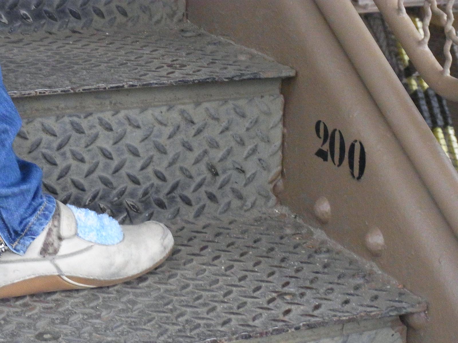 When we got to the first step, I was shaking. I’m not a big fan of heights…but there was sure to be fun at the top. Mrs.A started going up without hesitation, so I put a foot onto the first metal step, making sure it would hold my weight. I took a deep breath and started up after Mrs.A, Carter close behind.