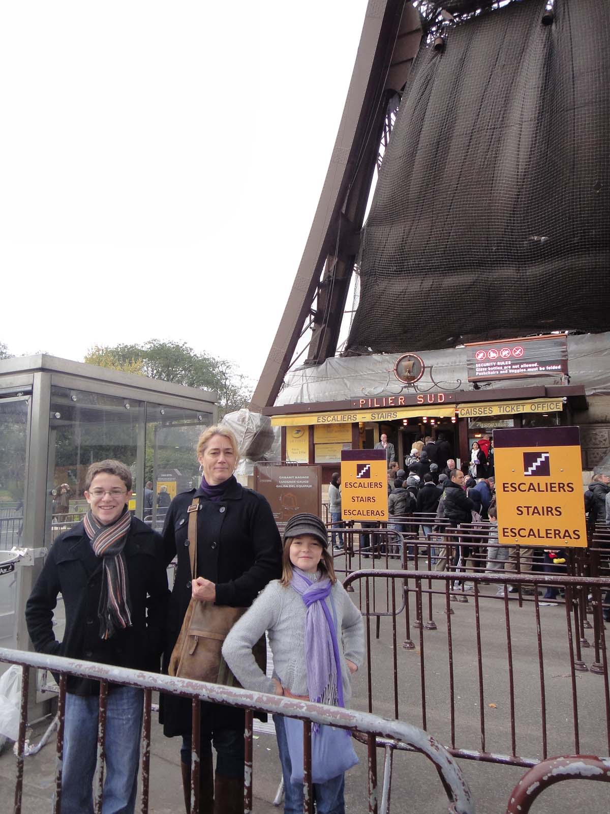 NOTE from Gina and Russ: We were lucky to be joined for our Armistice Day long weekend by jet-setter Beth Altcheck, who popped in from Boston for a long weekend of fun Paris-style. We also met her friend who is living in Paris right now, James Armstrong. Like us, James loves Paris and has spent quite a bit of time learning French and exploring the city. The kids knew James because he runs a cool field study with Beth each year on the topic of planetary motion and we had already met in Paris to share a meal and see some of his photographs. Architect, artist, author, naturalist and puzzler, he is an amazing Renaissance man! The pictures below are from the entire weekend and include several walks, restaurants and museums in addition to the photochronicle of Katherine, Carter and Beth's adventure at La Tour Eiffel.